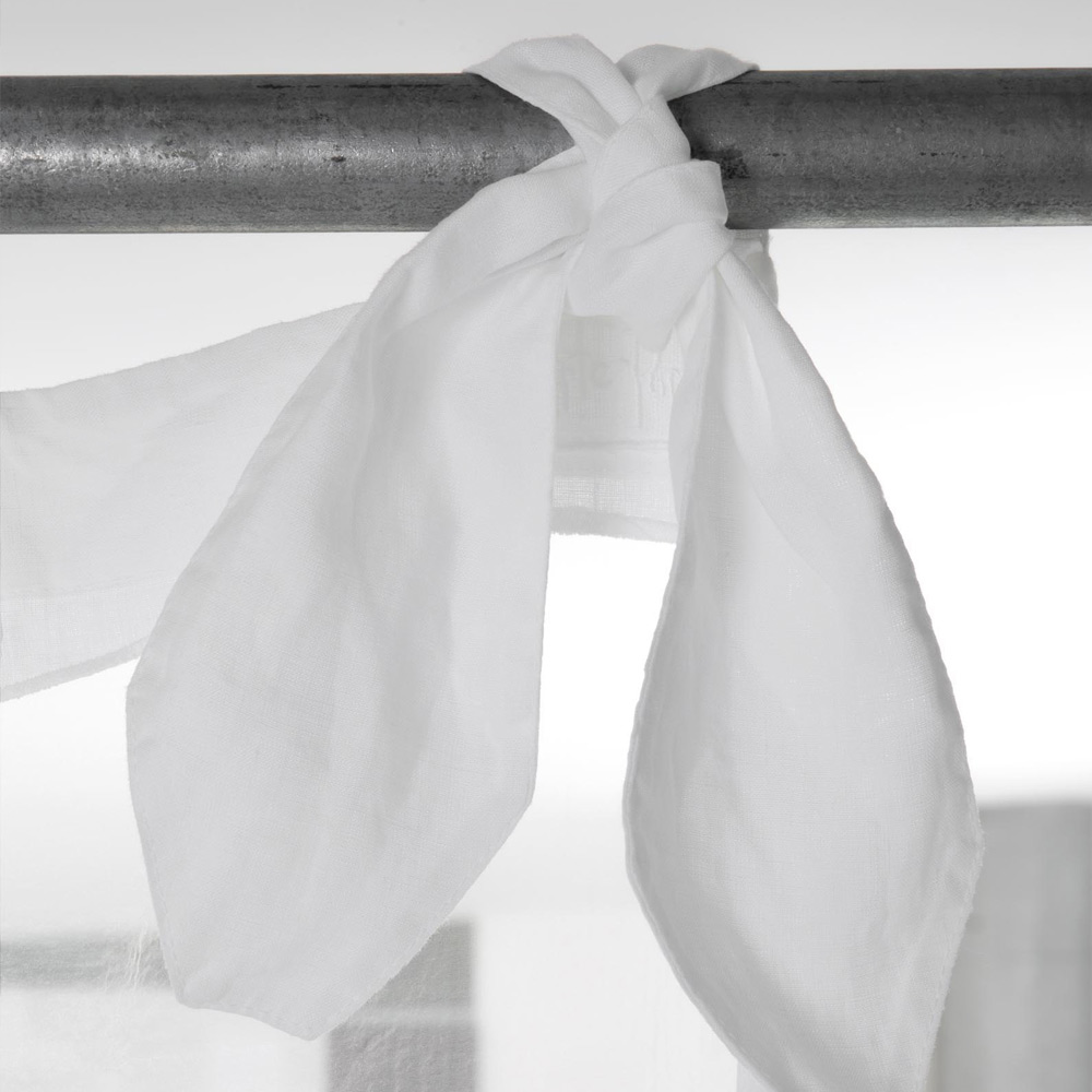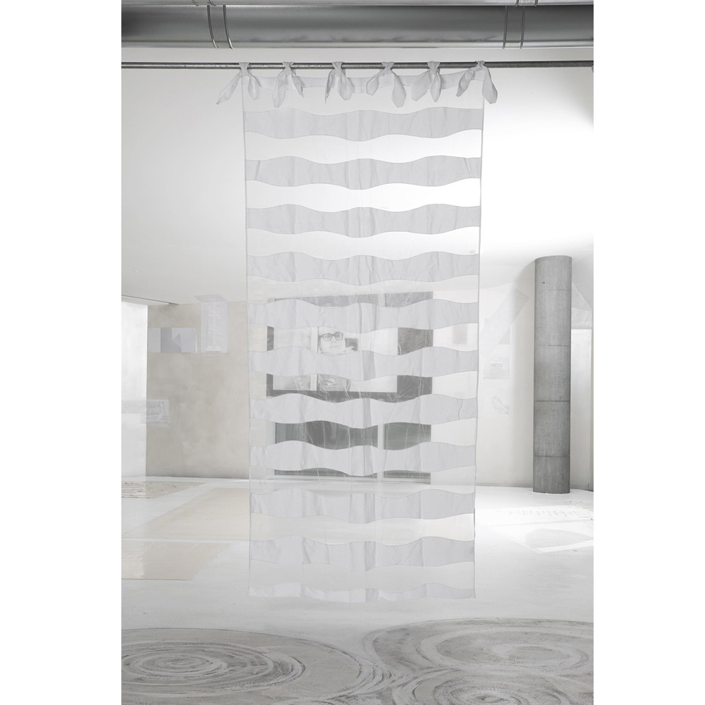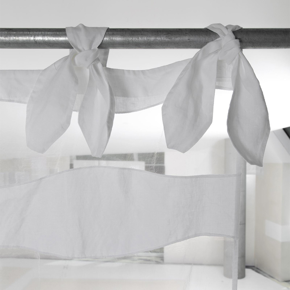 Weißer Vorhang aus Leinen und Organza mit Wellenstickerei und Schnürung, handgefertigte Qualität made in Italy.