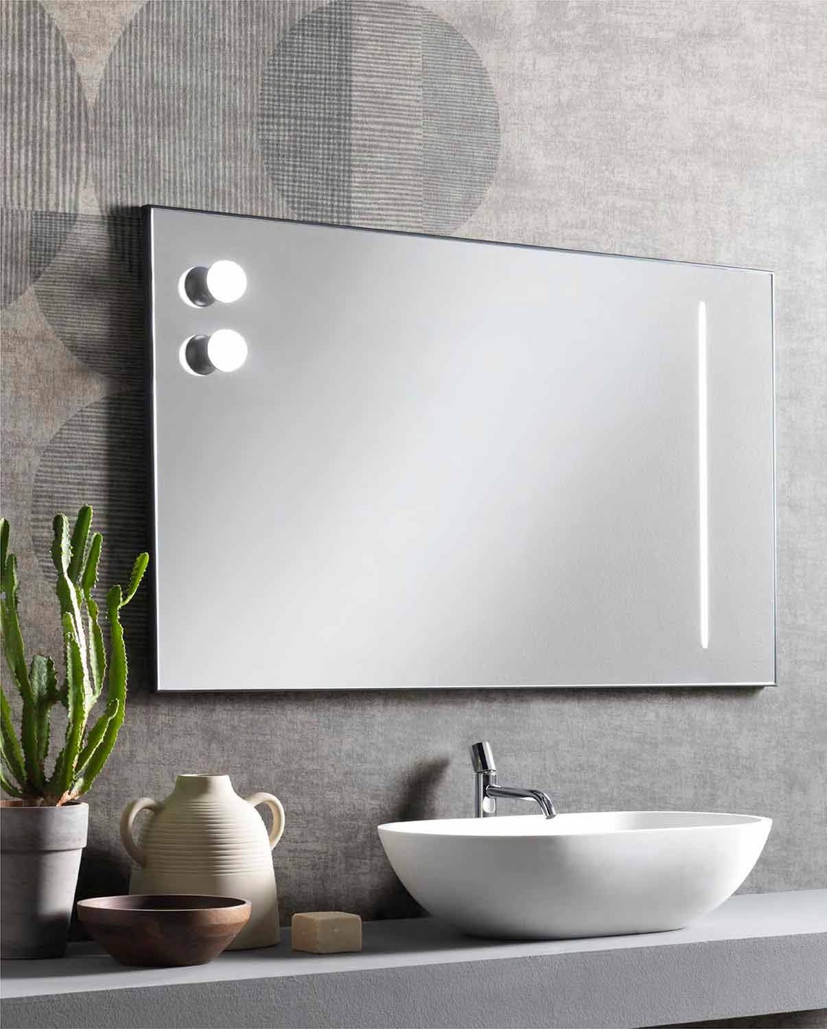 Wandspiegel mit zwei Lampen und Aluminiumrahmen im Made in Italy Design.