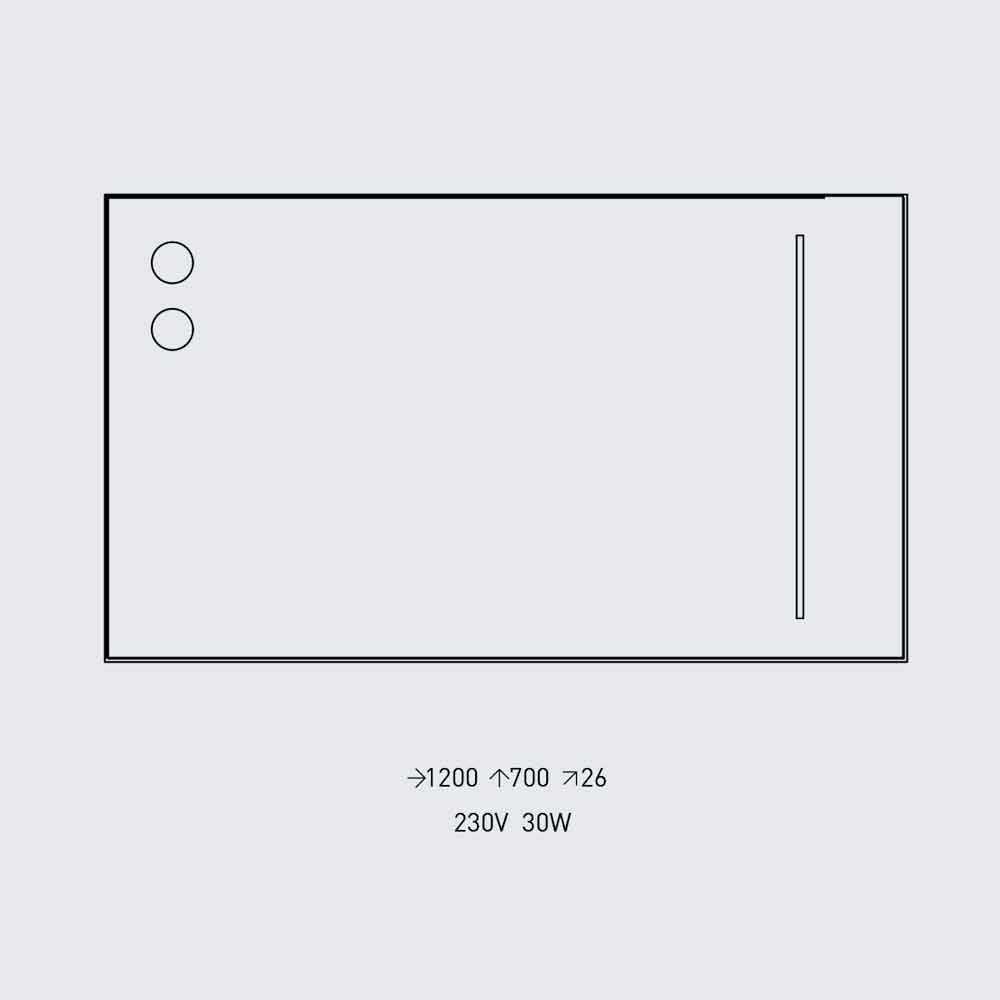 gekennzeichnet durch das Vorhandensein von zwei eingebauten Glühbirnen und einer in das Glas eingelassenen LED-Lichtlinie, die in zwei Varianten erhältlich ist.