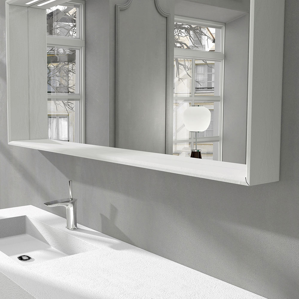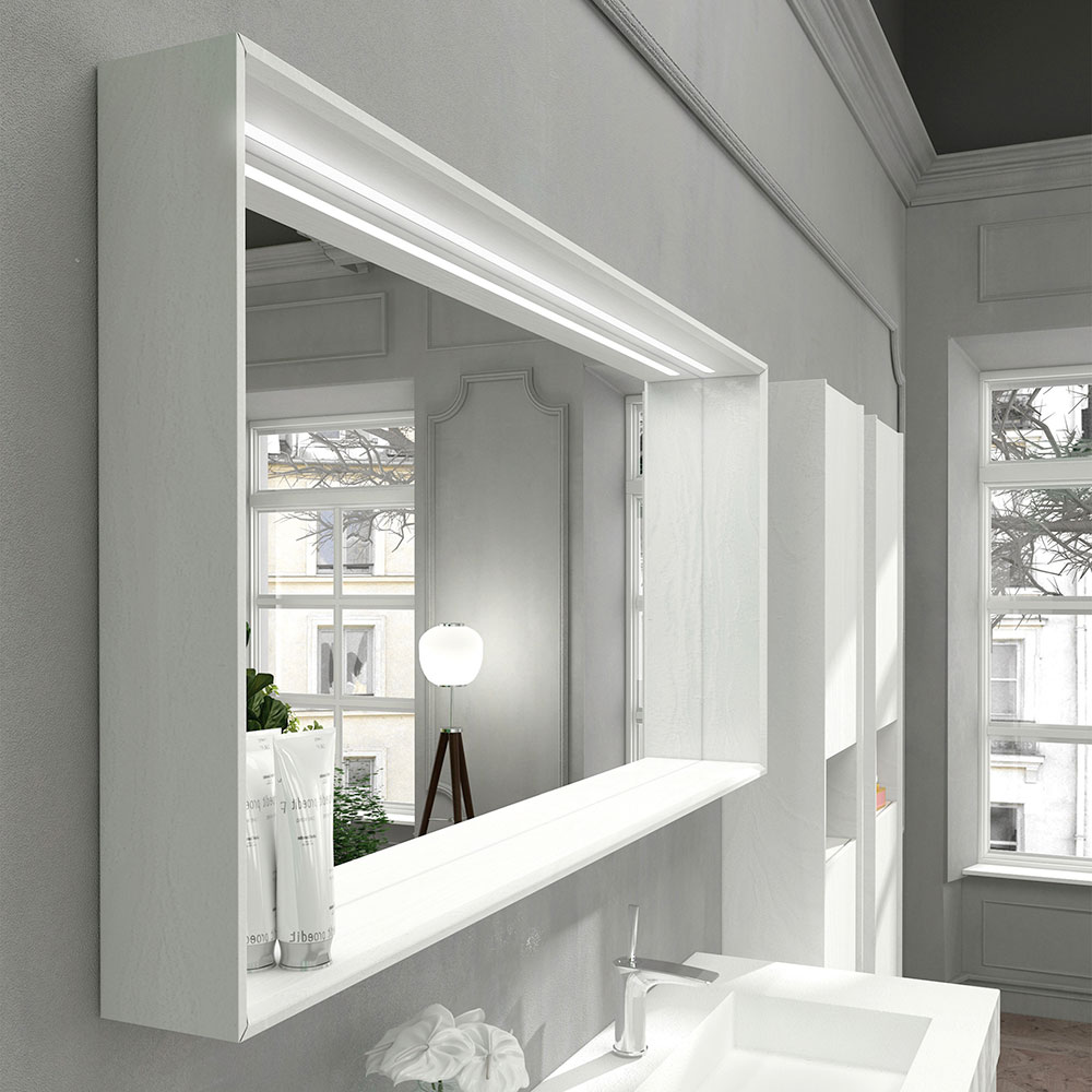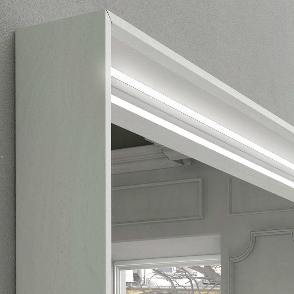 Rechteckiger Wandspiegel für Badezimmer mit LED-Licht und weißer Holzkante, Luxus made in Italy.