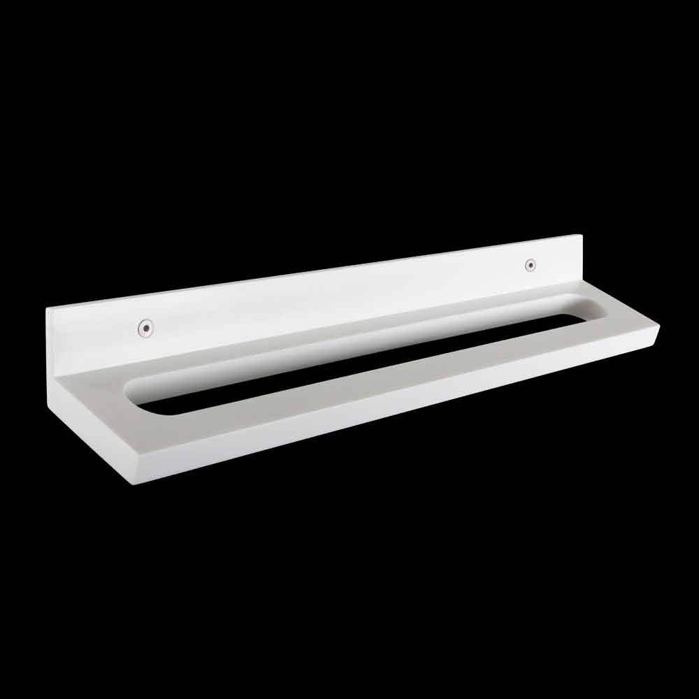 Wandmontierter Handtuchhalter aus weißem Corian mit sichtbaren Schrauben, made in Italy Design.