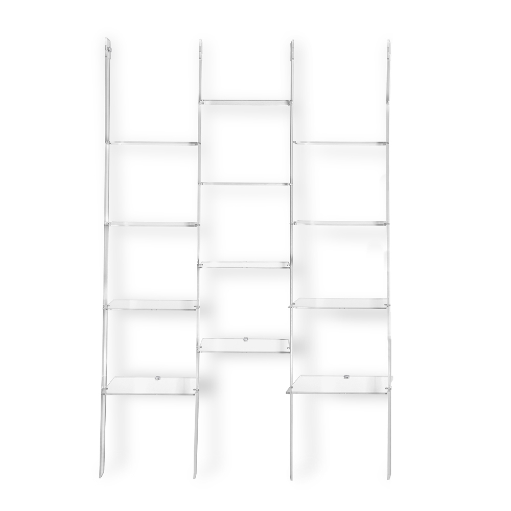 Leiterförmiges Wandbücherregal mit bis zu 4 Elementen aus transparentem Plexiglas, hergestellt in Italien.