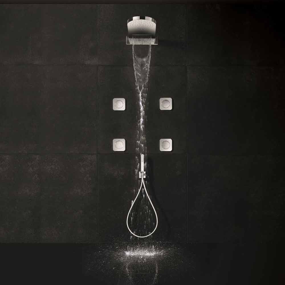 - wandmontierter Duschkopf aus kalkbeständigem Edelstahl;