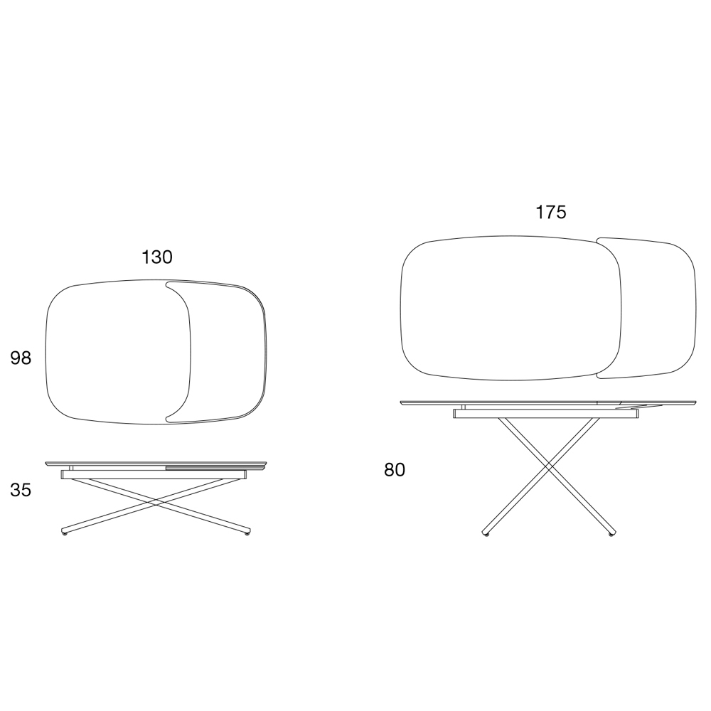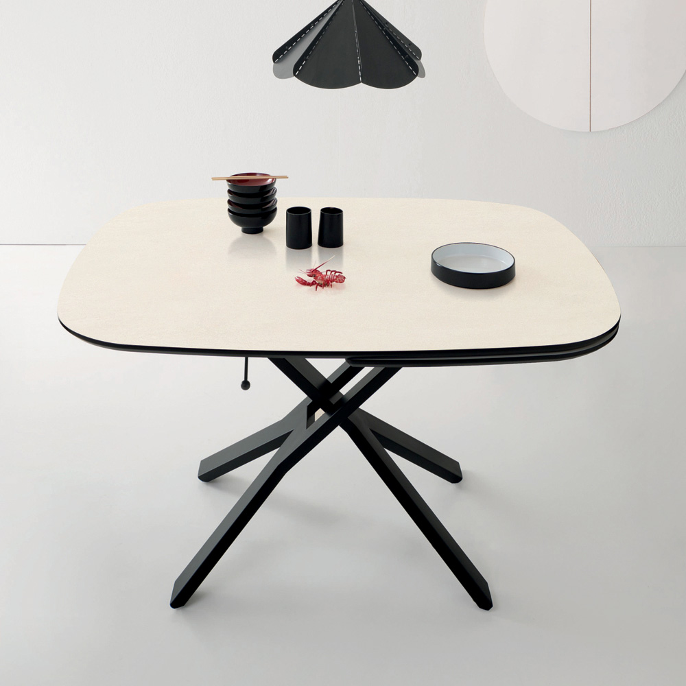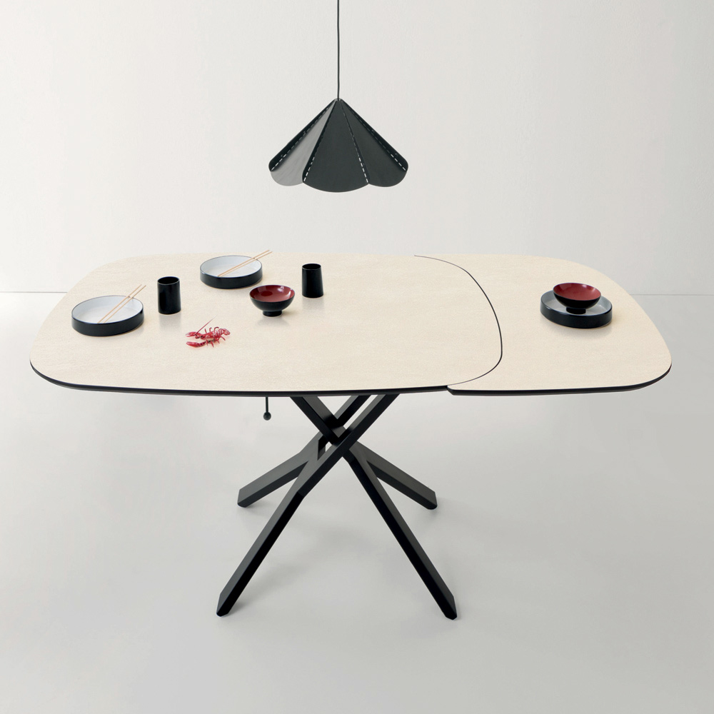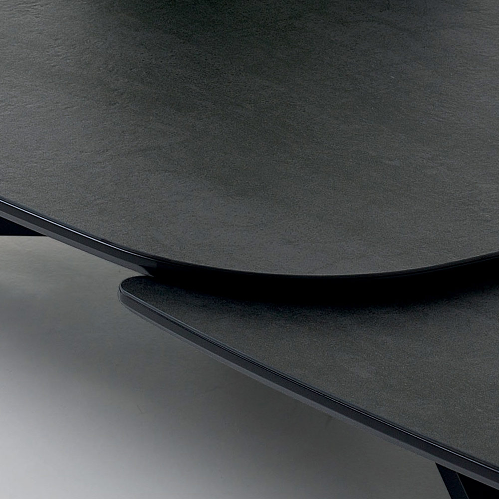Wandelbarer Couchtisch mit Metallfuß und Keramikplatte, hergestellt in Italien.