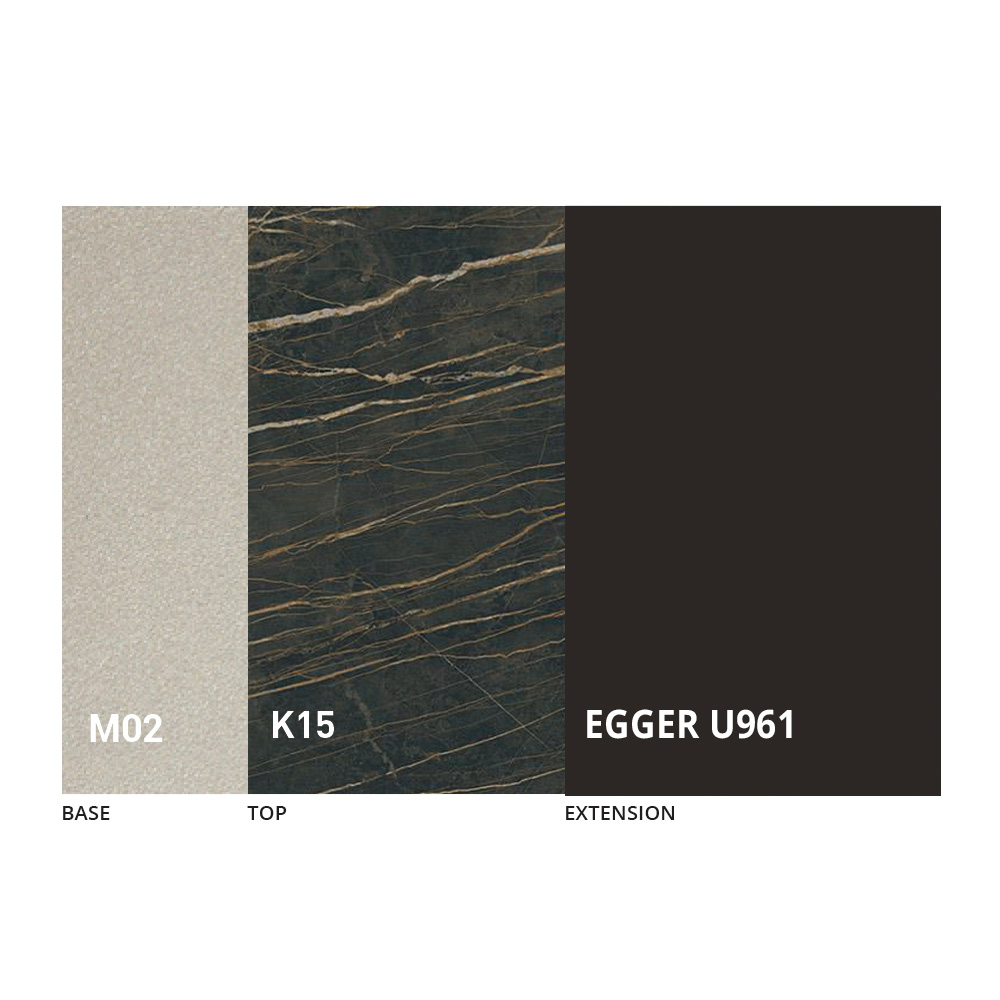 matte Keramikplatte mit Innenseite aus Melamin, die auf die Platte und den Sockel aus