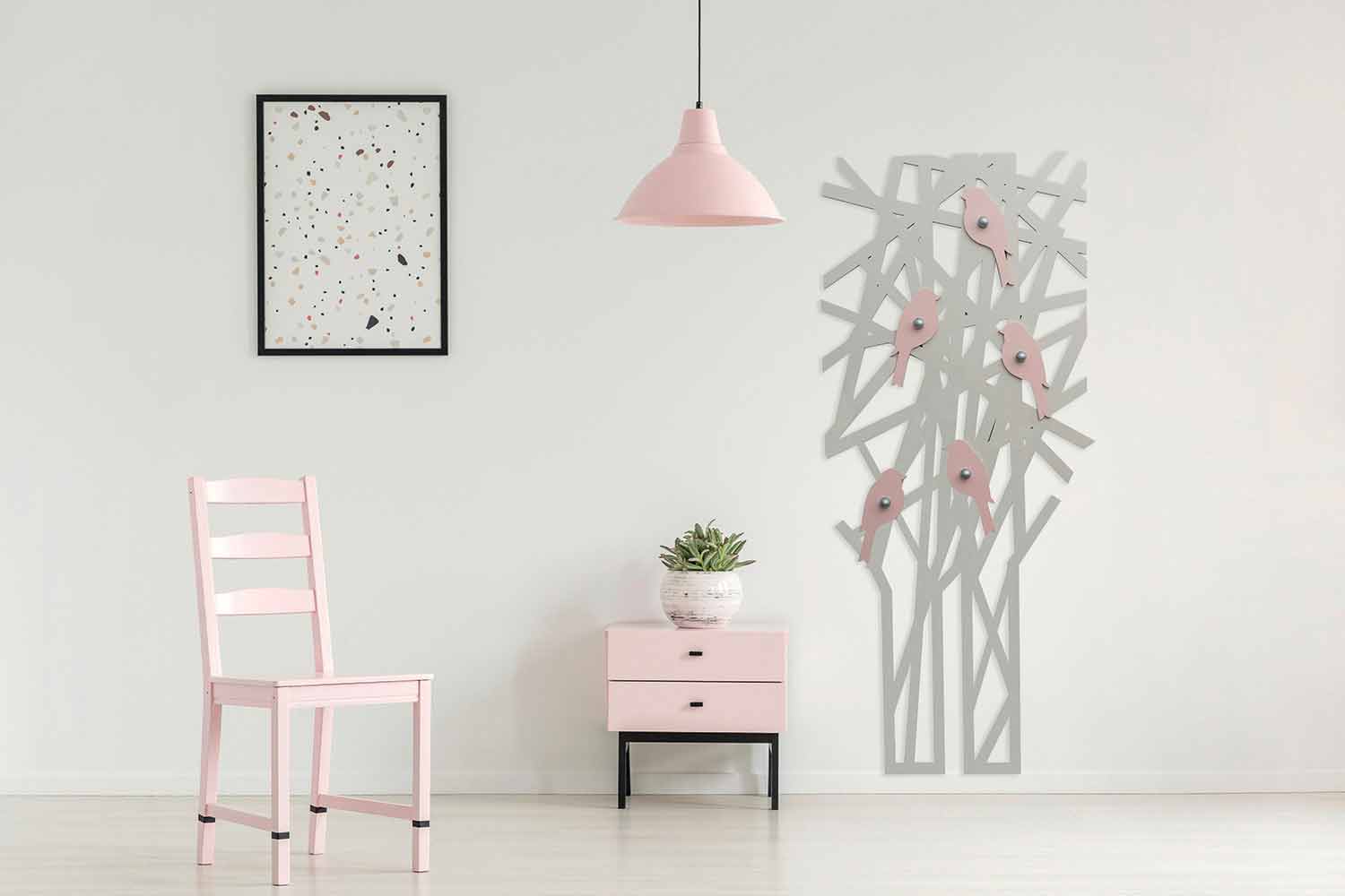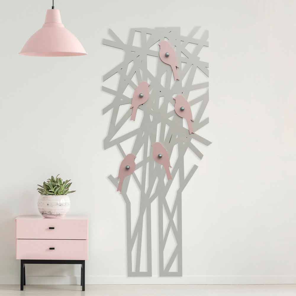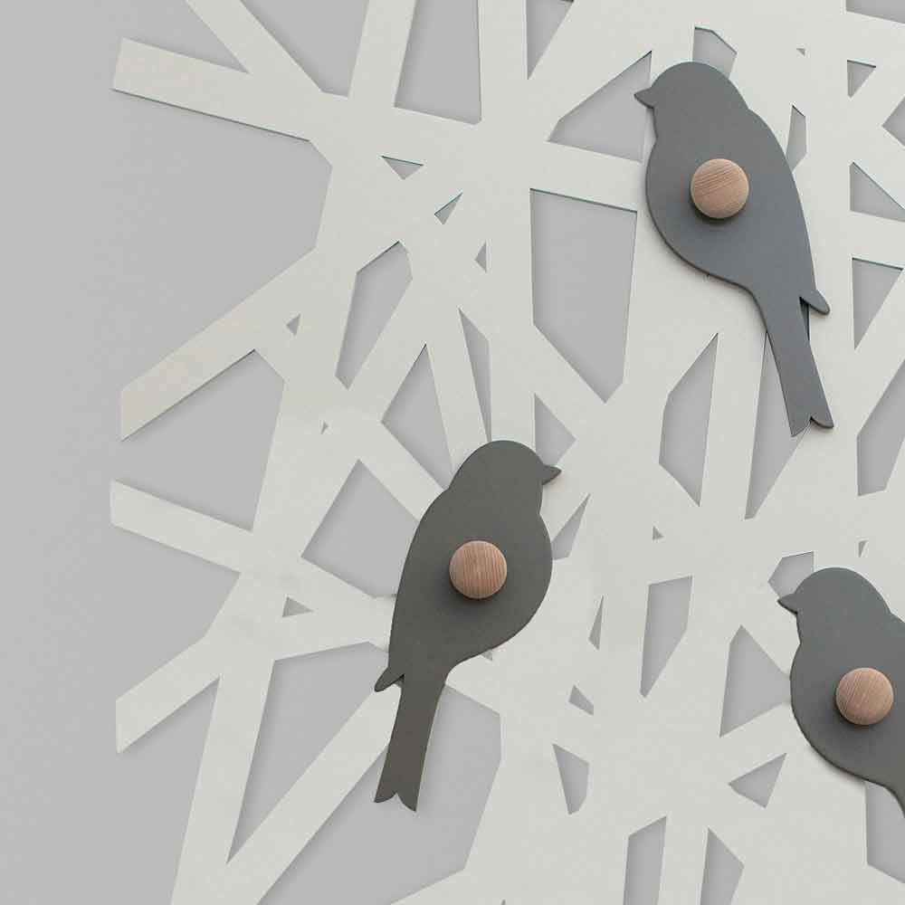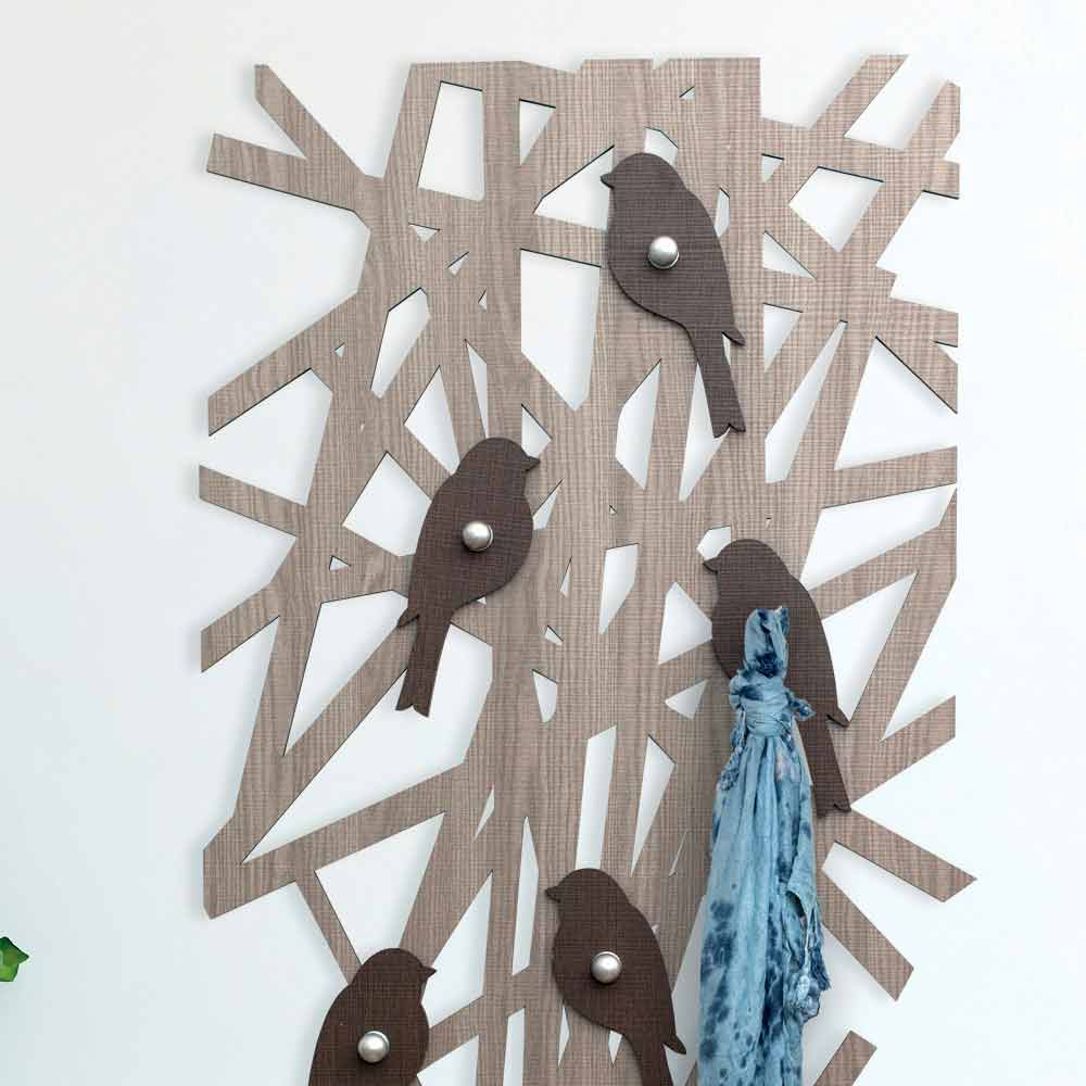 Wandhalter für den Eingang, modernes Design in Form eines stilisierten Baumes mit Vögeln, hergestellt in Italien.