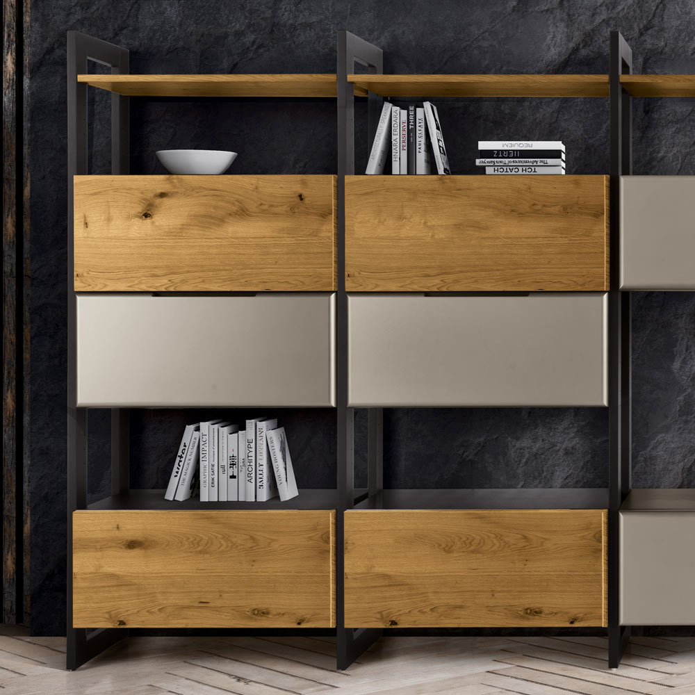 Wandkomposition aus MDF und eichenbeschichteter Tischlerplatte, hergestellt in Italien – Marit