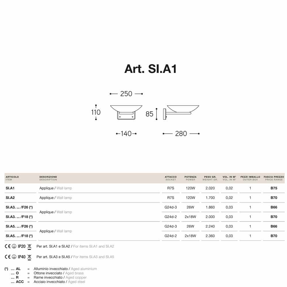Wandlampe aus Kupfer, Glas und Messing Nabucco Aldo Bernardi