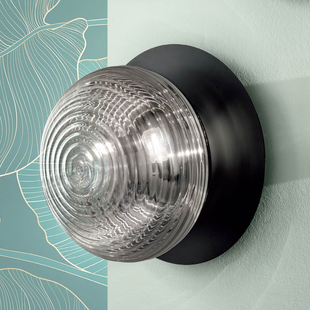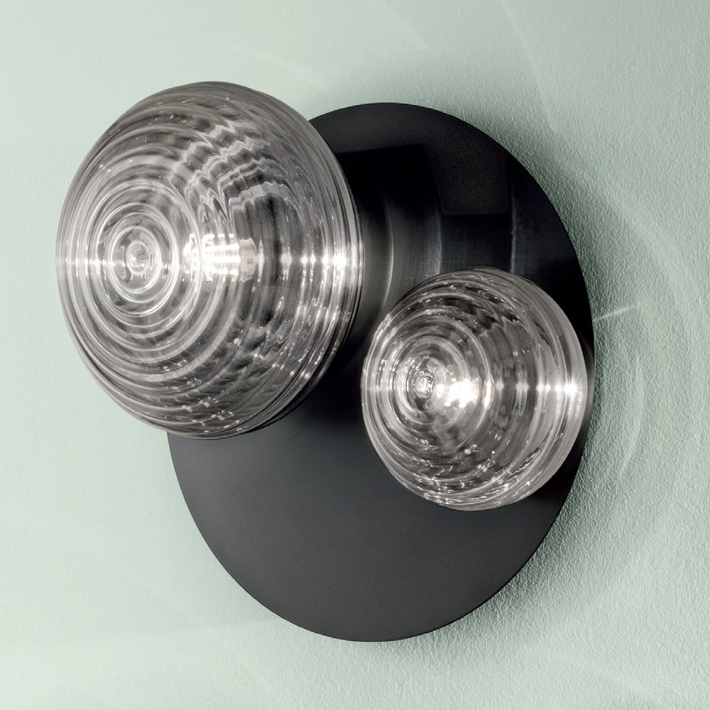 wichtigen visuellen Effekt erzeugen . Die wunderbaren Kombinationen der vorgeschlagenen Oberflächen vervollständigen die endgültige Ästhetik des Produkts und verleihen ihm dank der perfekten Kombination zwischen der Modernität des Metalls und der Eleganz des mundgeblasenen Glases eine einzigartige und raffinierte Note. Durch ihre Formgebung kann sie auch als praktische Wandleuchte an der Wand montiert werden, was sie noch funktionaler macht und ihren Wert und Wert steigert.