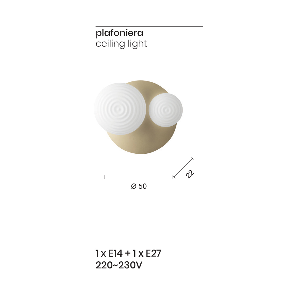- Durchmesser 50 x P 22 cm (1x E14 + 1x E27 220-230V);