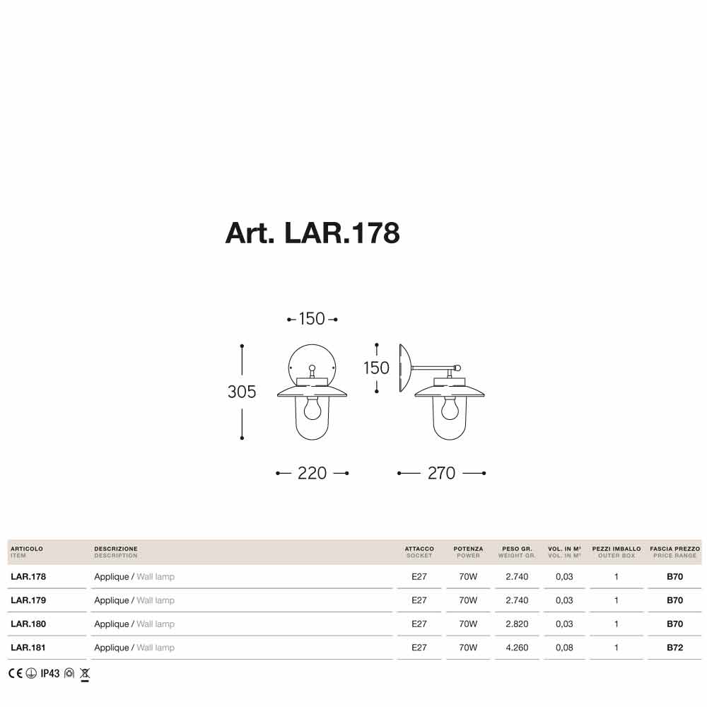 Wandlampe aus Kupfer, Glas und Messing La Traviata von Aldo Bernardi
