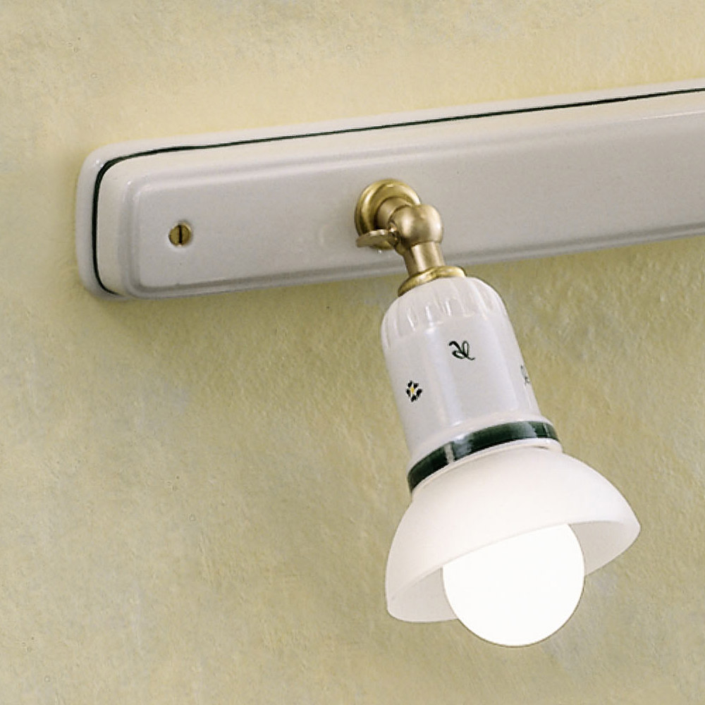 Lineare Wandleuchte mit 2 oder 3 Leuchten aus Messing und handbemalter Keramik, hergestellt in Italien von Ferroluce.