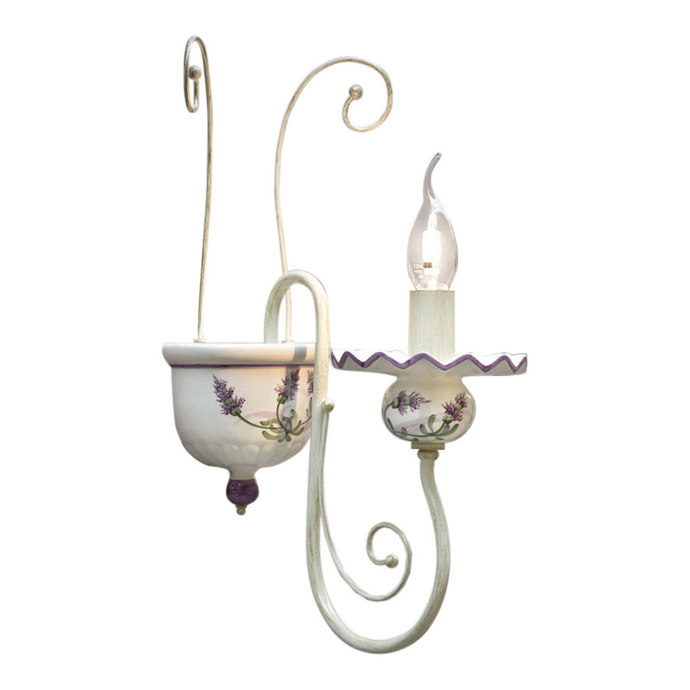 Wandlampe aus Messing und handbemalter Keramik, hergestellt in Italien von Ferroluce.