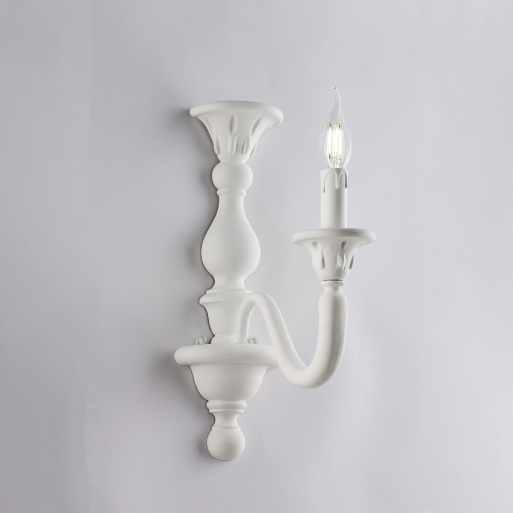 Diese Wandleuchte ist in den Ausführungen Shabby White und Antique Gold erhältlich und fügt sich harmonisch in klassische Wohnzimmer , elegante Eingangsbereiche , Flure , Schlafzimmer und Räume im Shabby-Chic- oder neu interpretierten klassischen Stil ein. Jedes Stück wird in sorgfältiger italienischer Handwerkskunst gefertigt, wobei die Liebe zum Detail einen ästhetischen Wert darstellt.