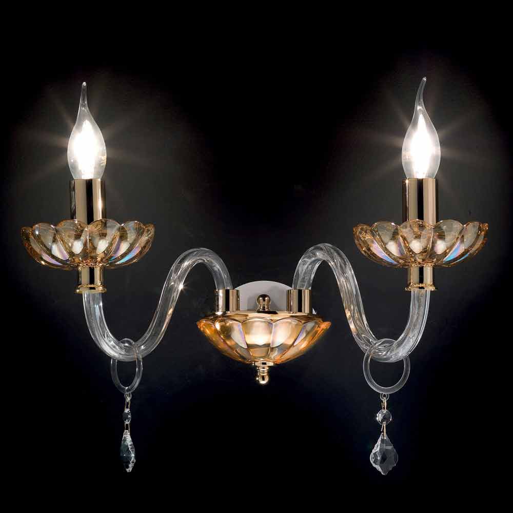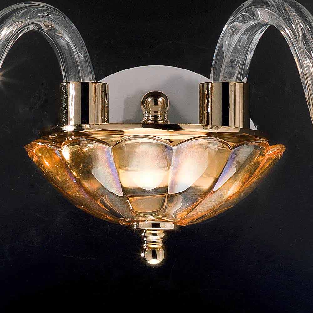 Wandlampe in Italien in Glas und Bernstein Kristall mit Gold-Finish.