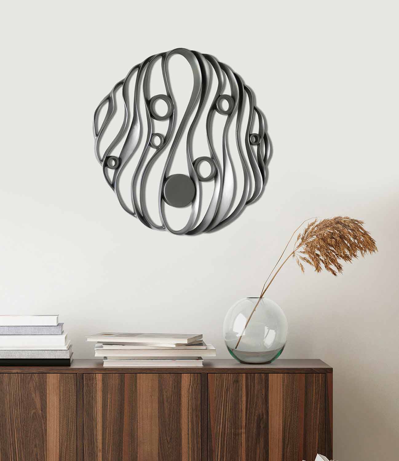 Wanddekoration in modernem Design aus perforierter Keramik in Schwarz oder Anthrazit für Wohn- oder Schlafzimmer in Italien.
