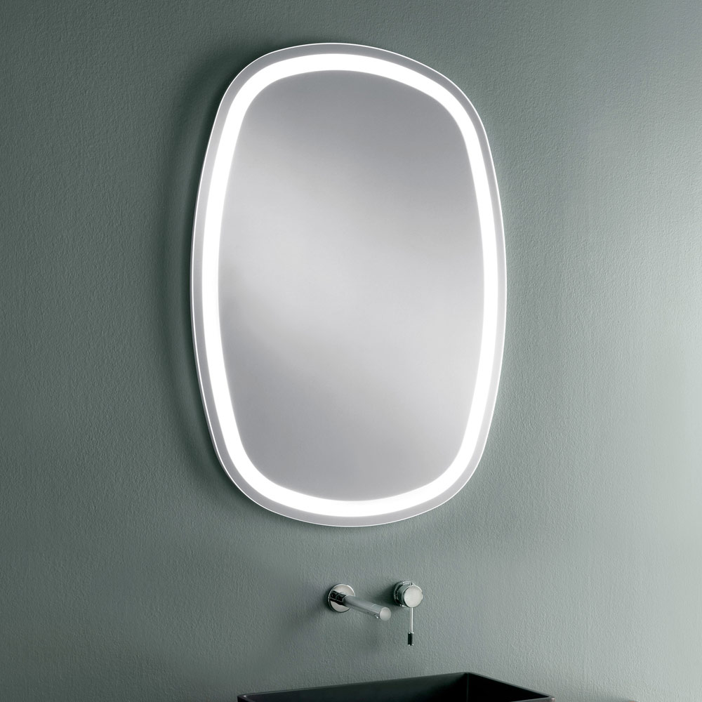 Wandspiegel für Badezimmer mit geformtem Design mit integrierter LED-Beleuchtung, Qualität made in Italy.