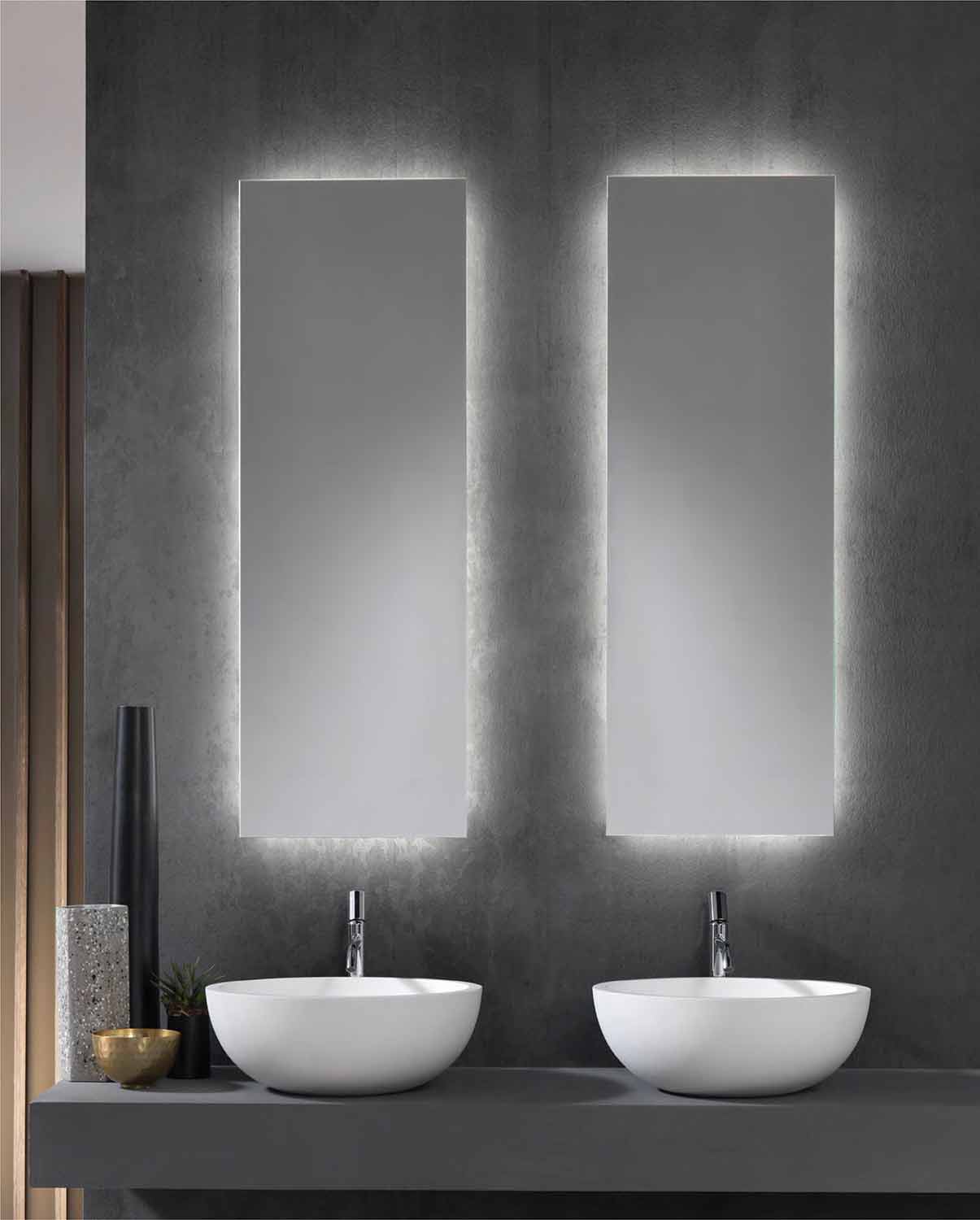 Moderner rechteckiger Wandspiegel mit Hintergrundbeleuchtung und LED-Licht Made in Italy.