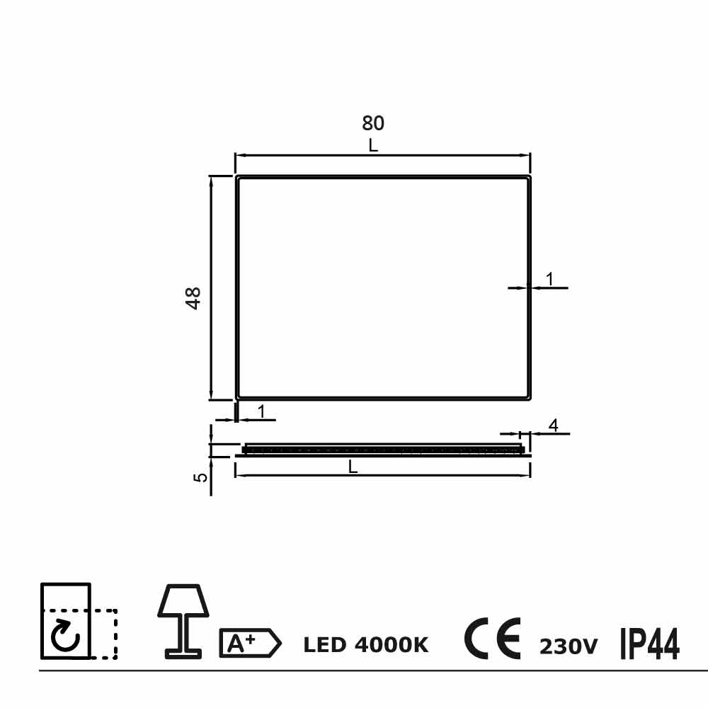 Eleganter Spiegel mit integrierter LED-Beleuchtung mit weichen und essentiellen Linien. Die leicht abgerundeten und satinierten Kanten machen diesen Spiegel extrem hell und für jede Umgebung geeignet. Reversible Wandmontage Horizontal / Vertikal.