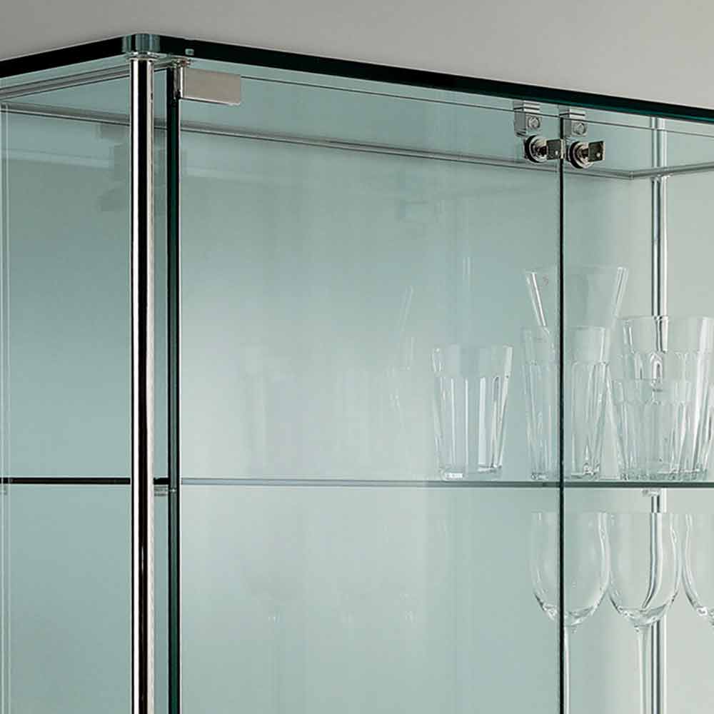 Vitrine mit zwei Türen aus transparentem Glas und Metall mit Verschluss, hergestellt in Italien.