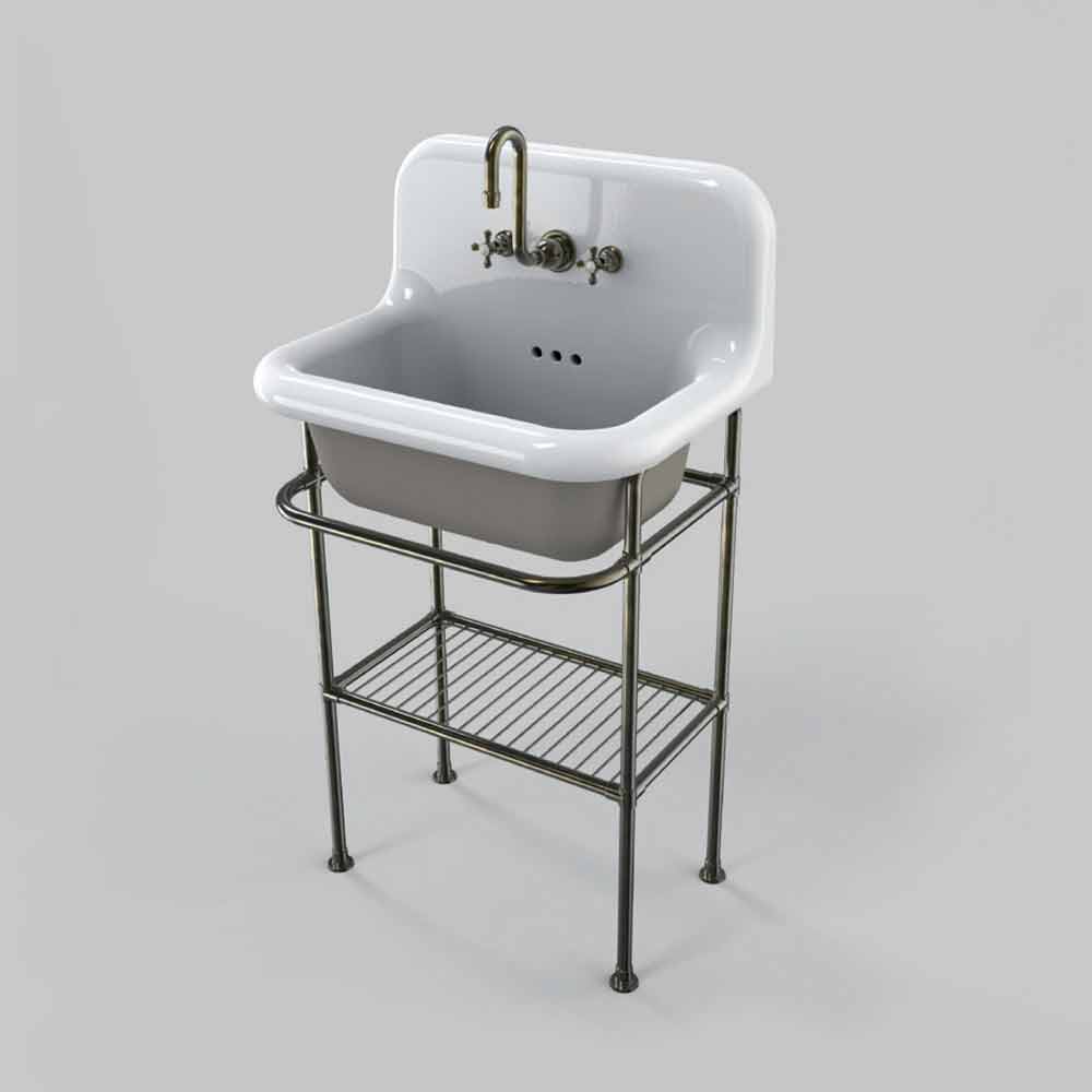 Tom ist ein wunderschönes Wandwaschbecken in rechteckiger Form mit einem originellen Vintage-Design, das durch eine schöne Metallstruktur mit Grill bereichert wird.