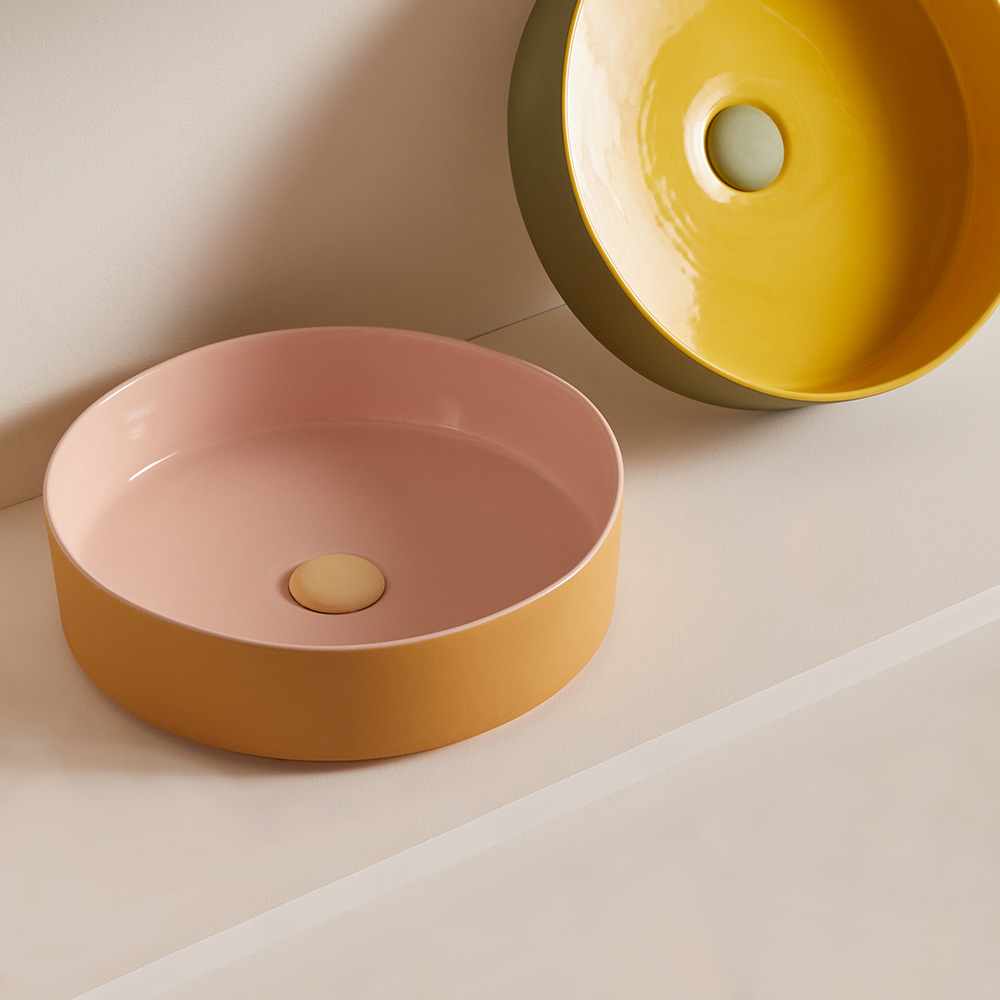 in Italien hergestellt. Dieses Waschbecken ist von den Farben der Süßigkeiten inspiriert und spielt mit der