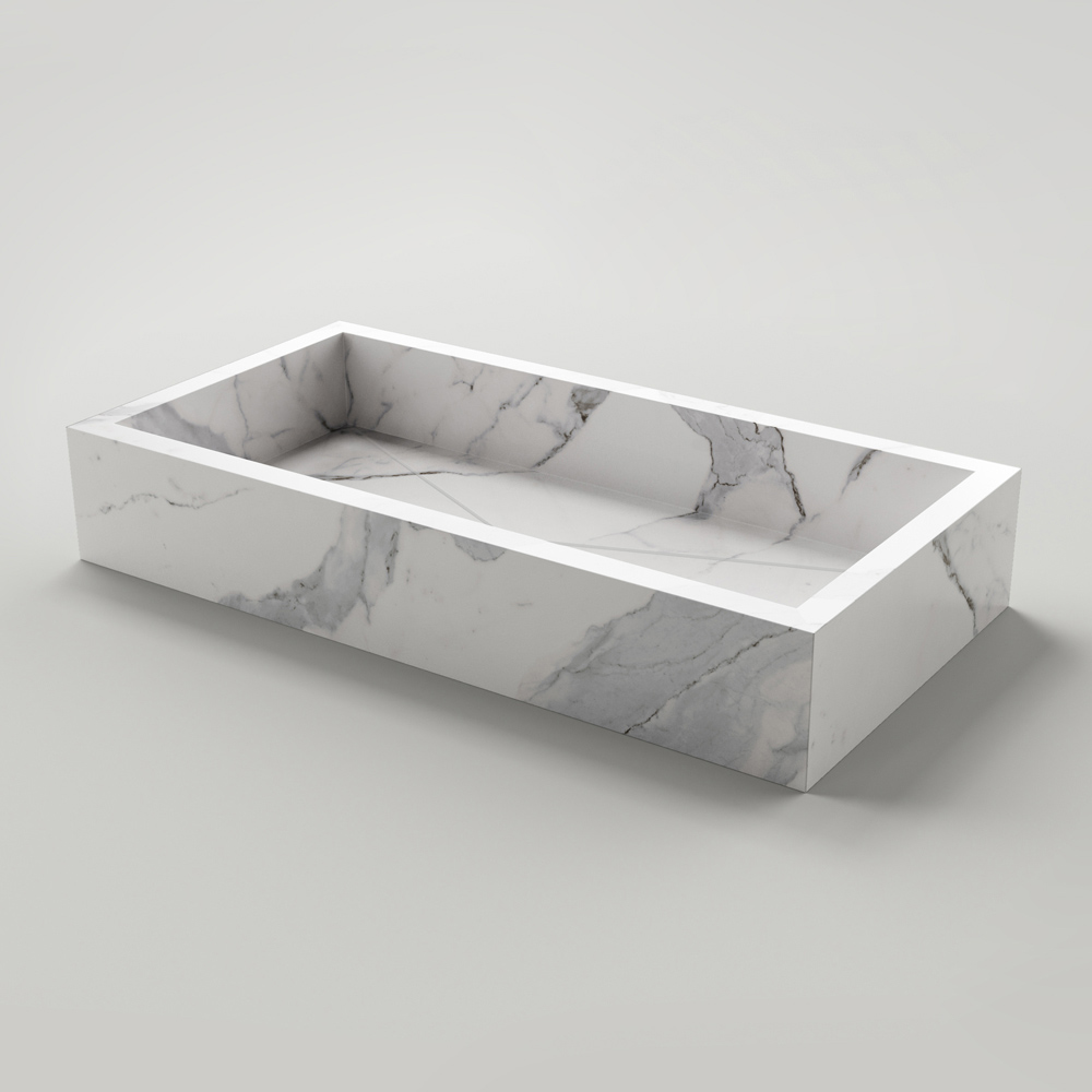 Rechteckiges Aufsatzwaschbecken aus Feinsteinzeug Made in Italy.