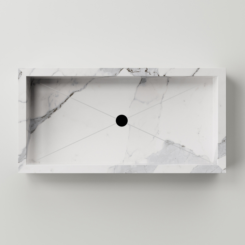 Dank der Möglichkeit, aus einer großen Auswahl an verschiedenen Oberflächen zu wählen, können Sie mit dem Waschbecken Ihrer Kreativität freien Lauf lassen, um einzigartige Atmosphären mit starker visueller Wirkung zu schaffen. Der Einsatz von