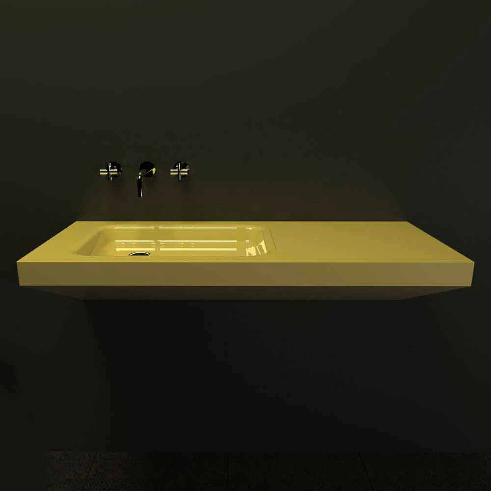 Die Formen und die sorgfältige Materialauswahl schaffen ein Spiel aus Material und Farbkontrasten, das den Wellnessbereich des Hauses verschönert, klare und entschiedene Linien machen dieses Waschbecken zu einem Designstück für das Badezimmer.