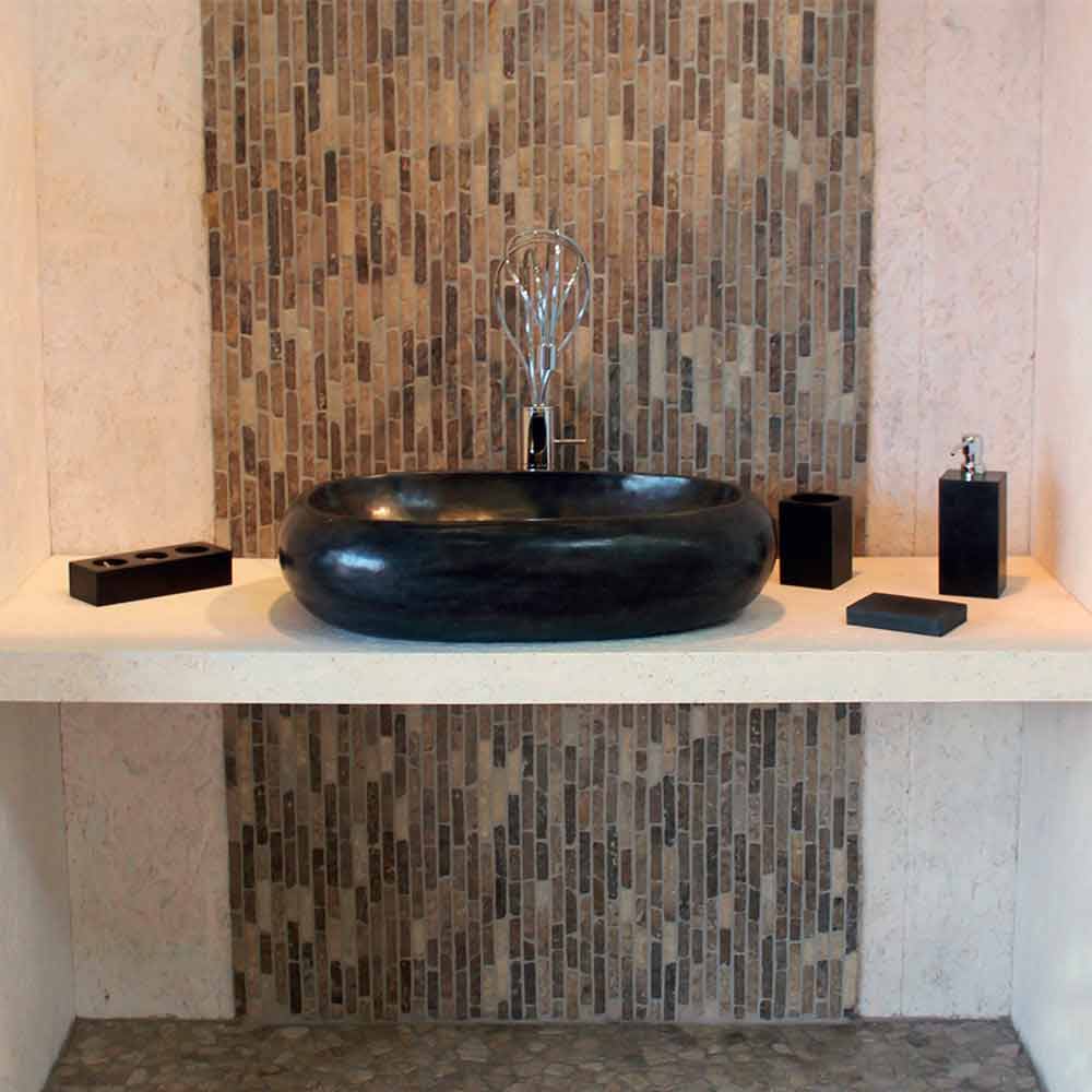 Aufsatzwaschbecken aus Marmor schwarz - Waka Modell - ovale bis runde Form ( siehe Bilder und techn. Zeichnung )
