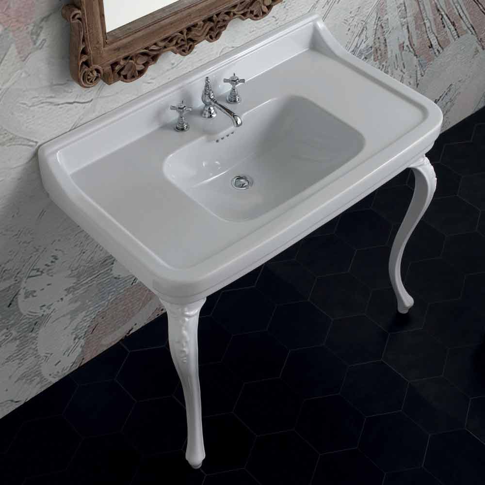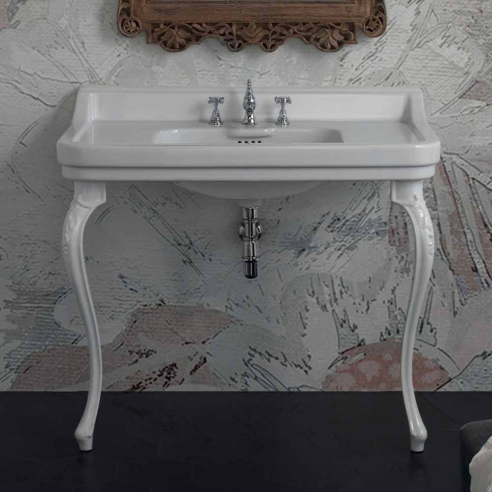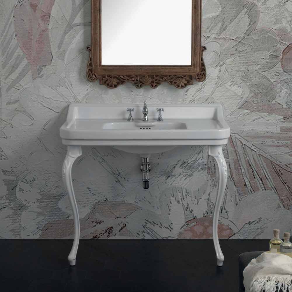 Konsolenwaschbecken im klassischen Design aus Keramik made in Italy, Swami