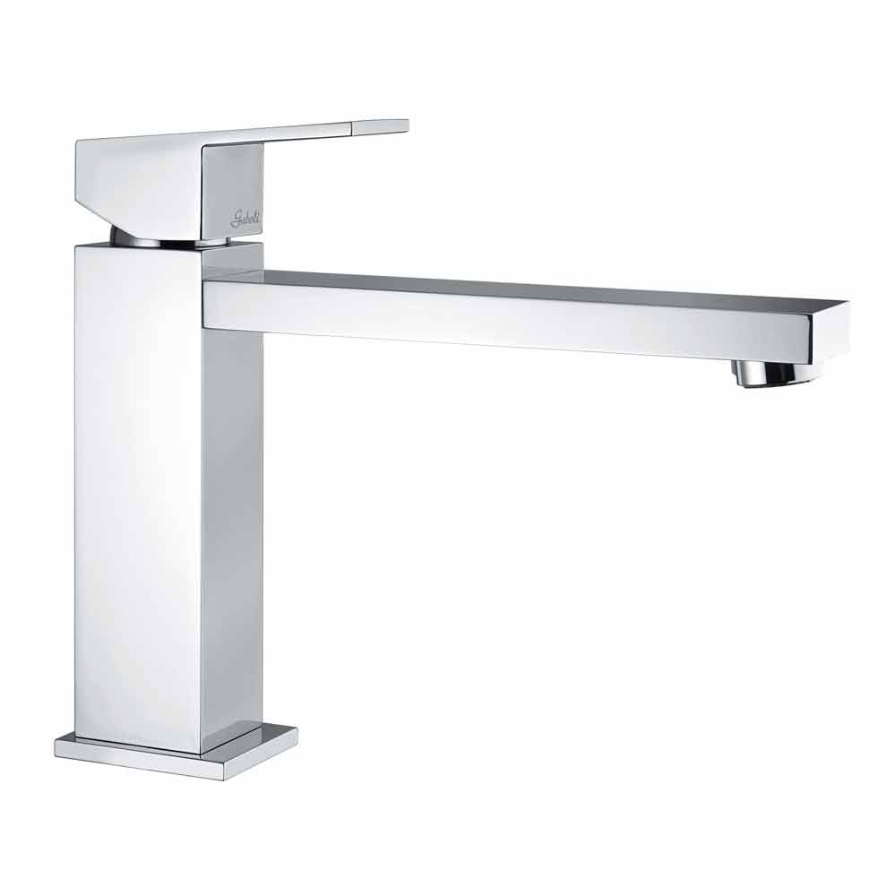 Verchromt Messing Waschbecken - Mischer mit Ausguss 170 mm Achsabstand komplett mit Ø 25 mm Kerox offener Patrone. Quadratische Linien und klar definierte Winkel verleihen dem Produkt und dem gesamten Raum eine äußerst moderne und raffinierte Note und bereichern es mit Stil und einem völlig neuen Geschmack. Seine Einfachheit und die wundervolle Chromoberfläche ermöglichen es, dass dieser Wasserhahn auf einwandfreie Weise Teil eines jeden Dekors wird, was zu einem diskreten und eleganten Ergebnis führt.