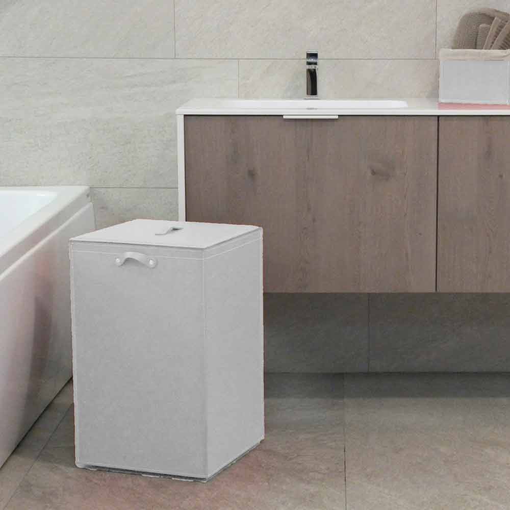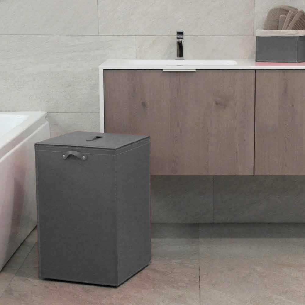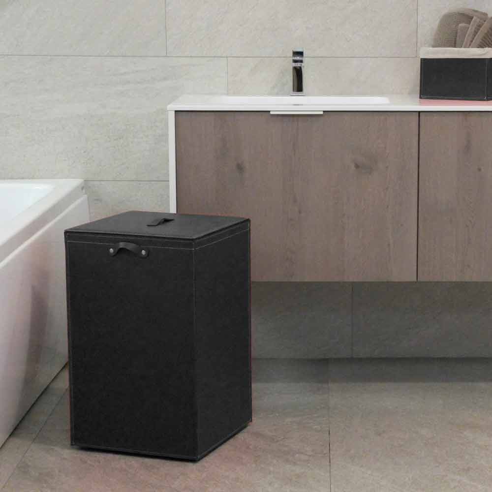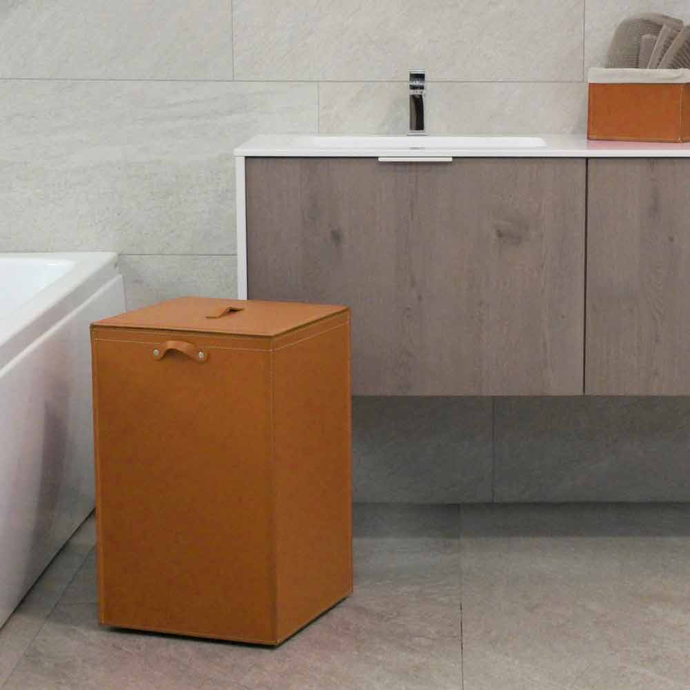 Wäschekorb aus Leder mit quadratischer Basis David, made in Italy