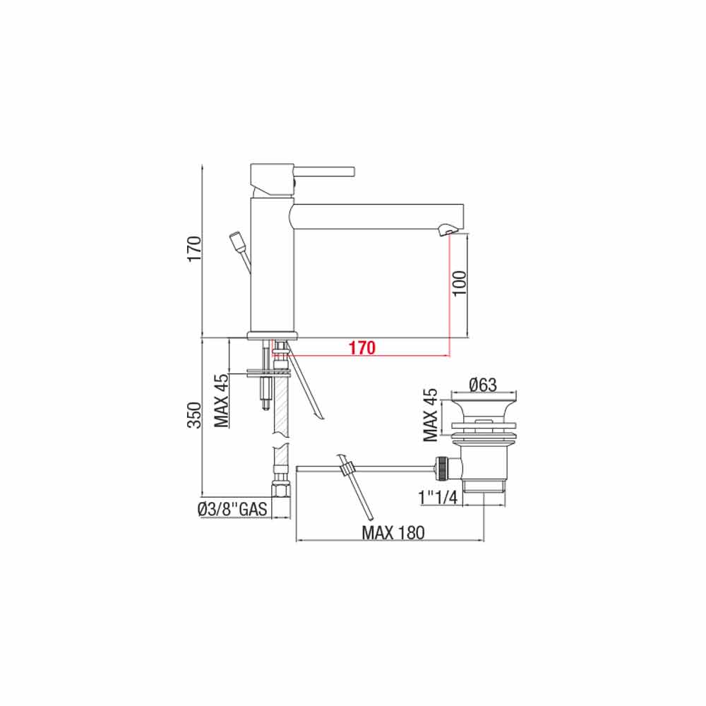 Waschtischmischer mit Ausguss 170 mm Achsabstand Made in Italy - Ermia