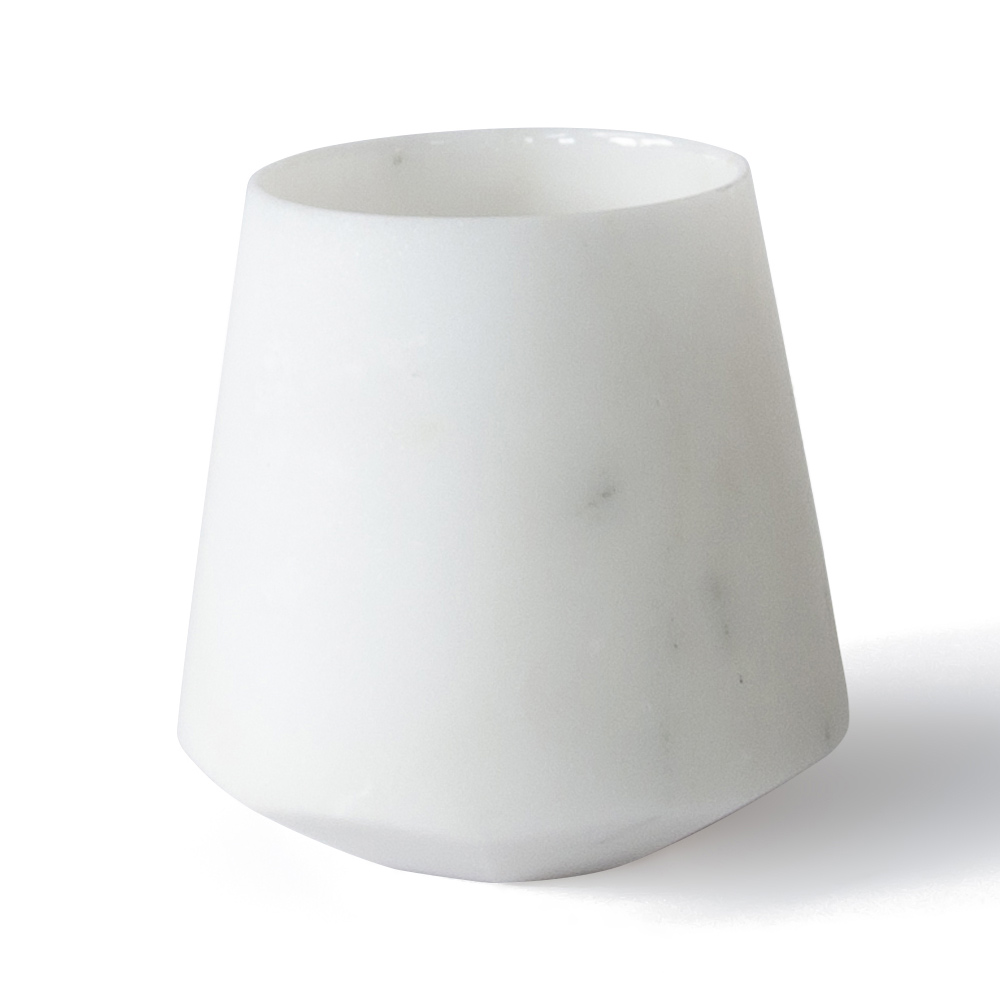 Wasserglas aus satiniertem weißem Carrara-Marmor, Design made in Italy.