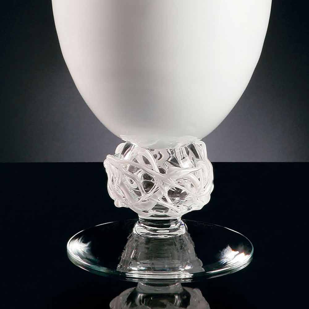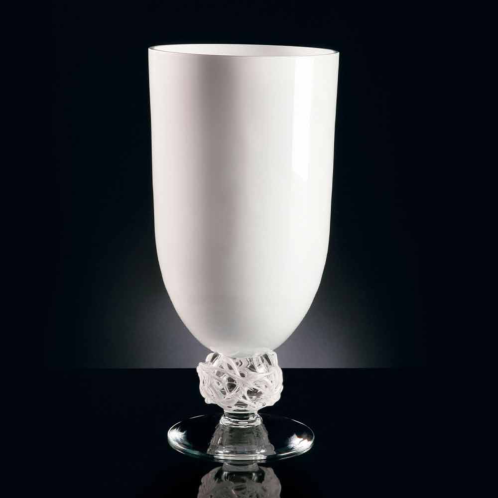 Handgefertigte Vase für Innenräume aus weißem Glas mit transparentem Boden Made in Italy.