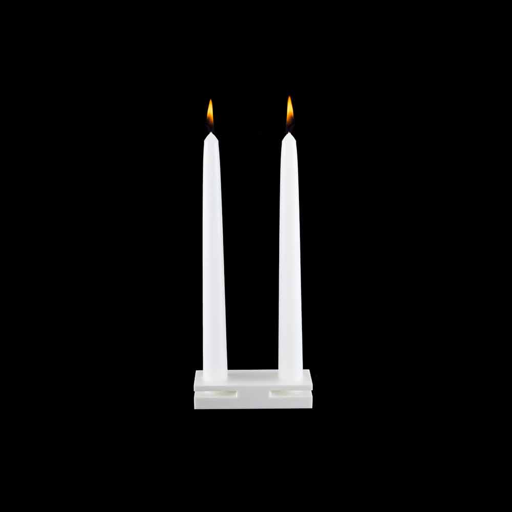 Hochwertiger Design-Kerzenhalter aus weißem Corian, hergestellt in Italien.
