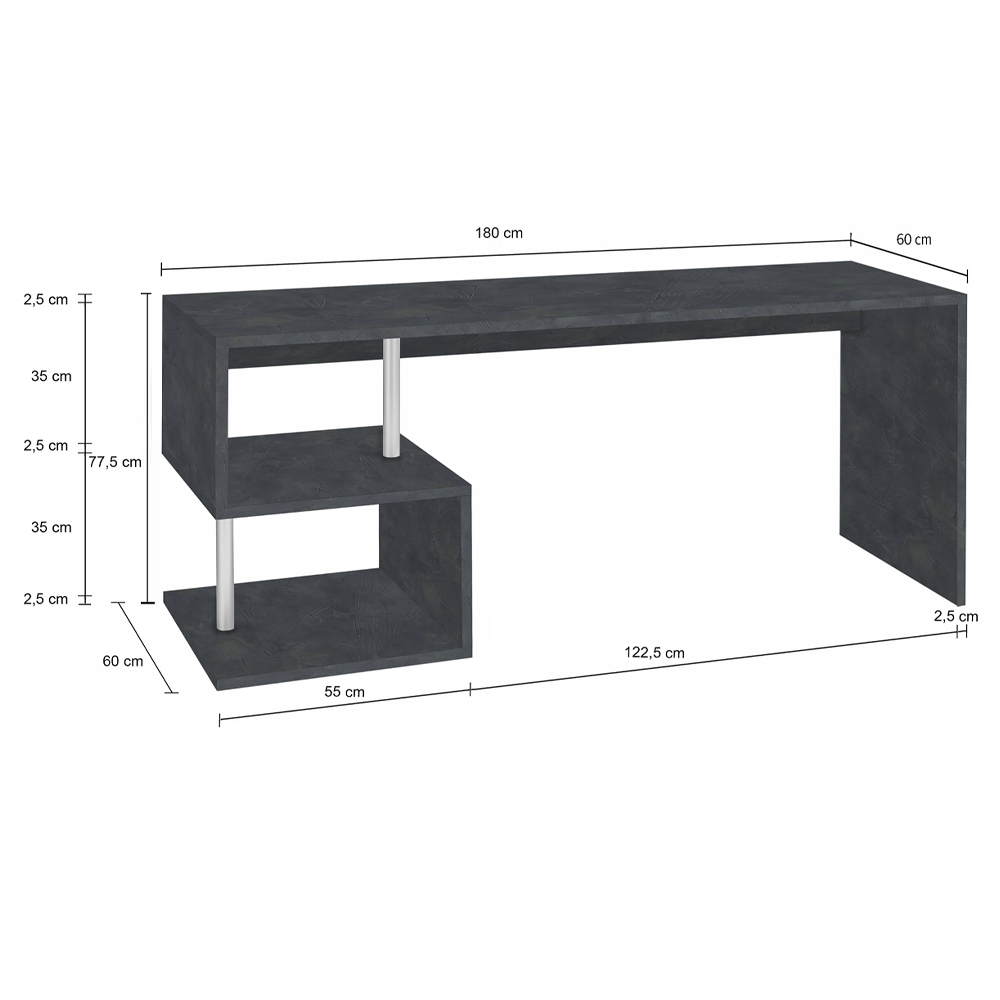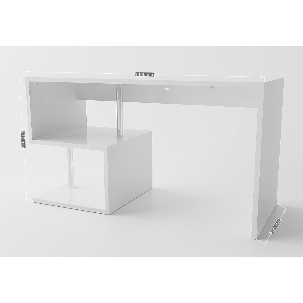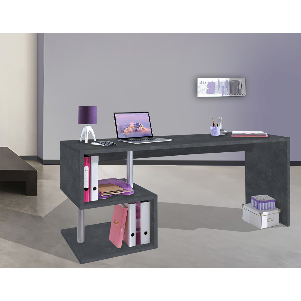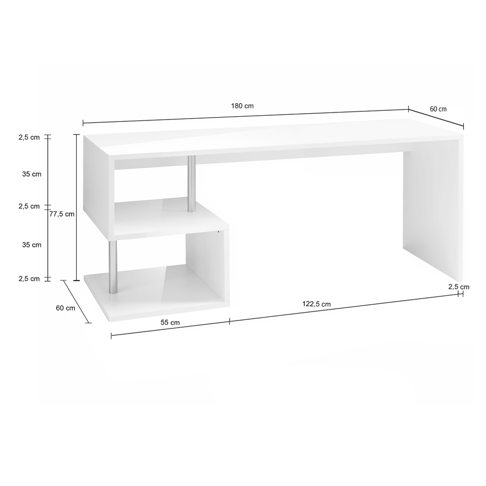 Glänzender weißer oder schieferfarbener Holzschreibtisch mit modernem Designregal in 3 Größen made in Italy.