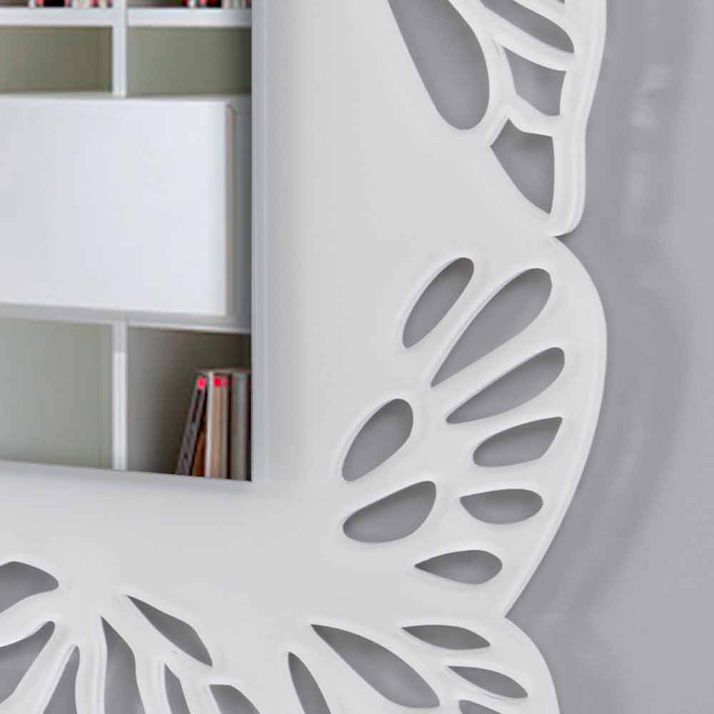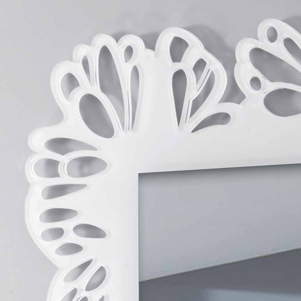 Rechteckiger Wandspiegel mit weiß dekoriertem Rahmen aus modernem Plexiglas aus Italien.