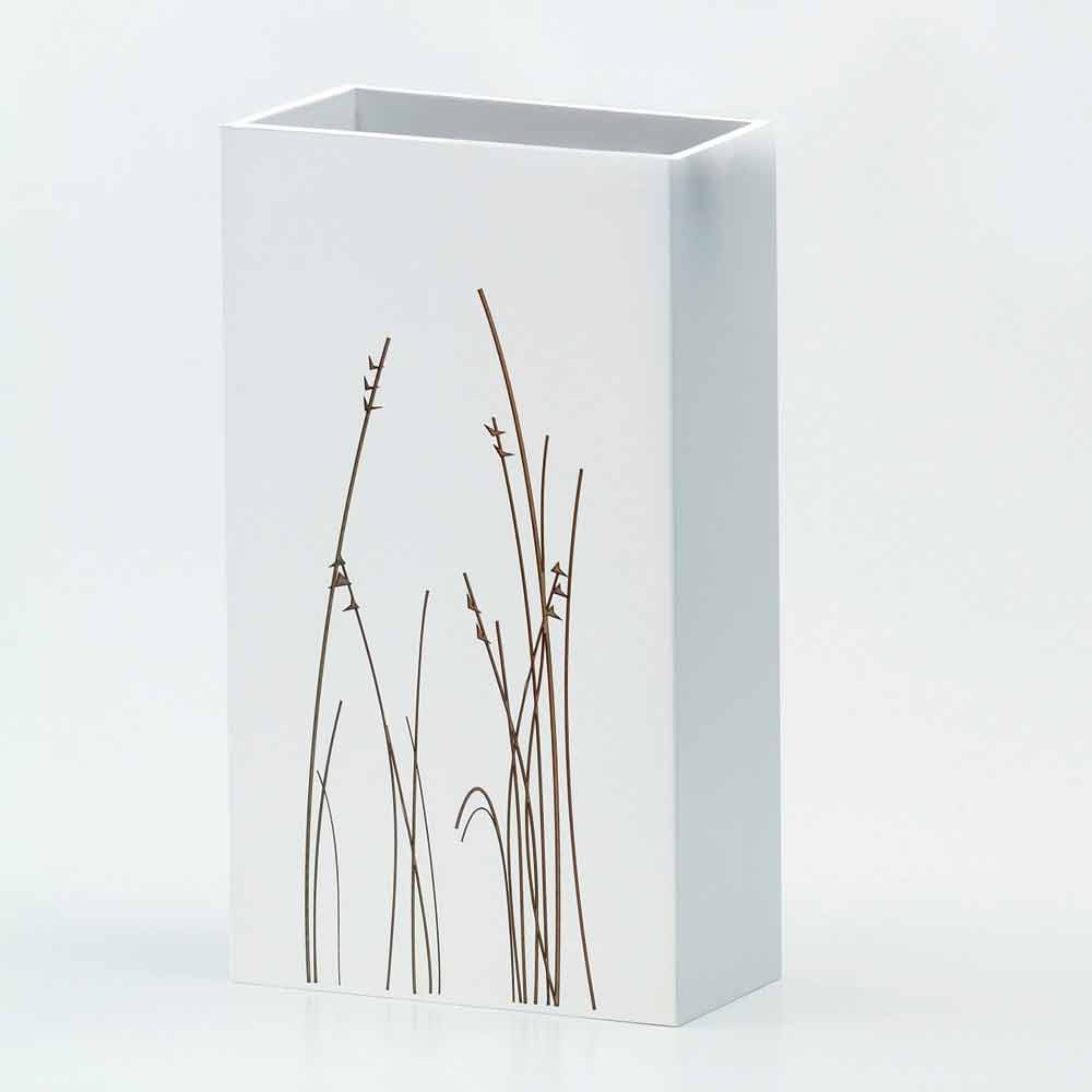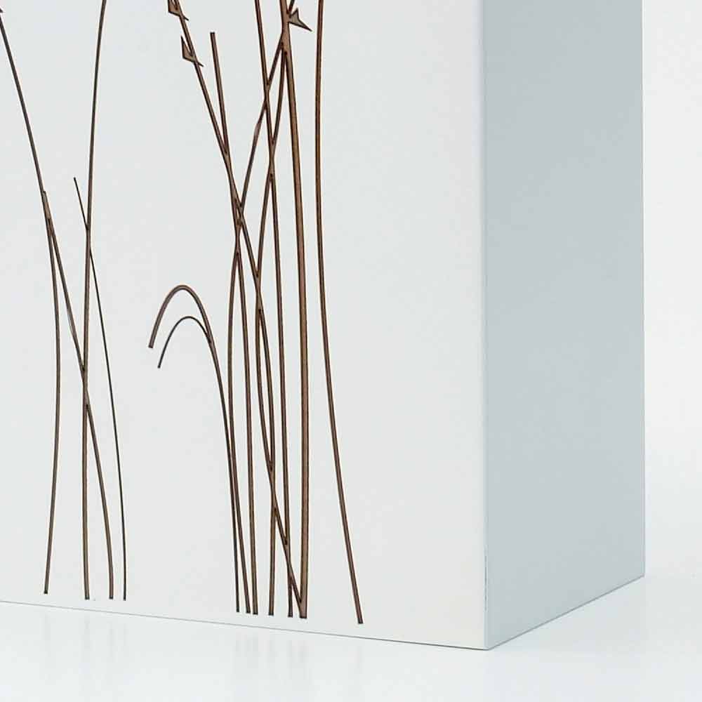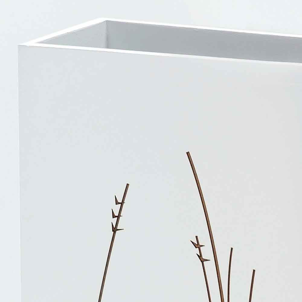 Moderner rechteckiger Schirmständer aus weißem Holz mit lasermarkierten Mustern, bodenstehendes Design hergestellt in Italien.