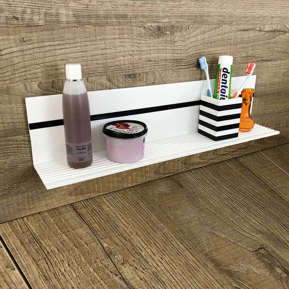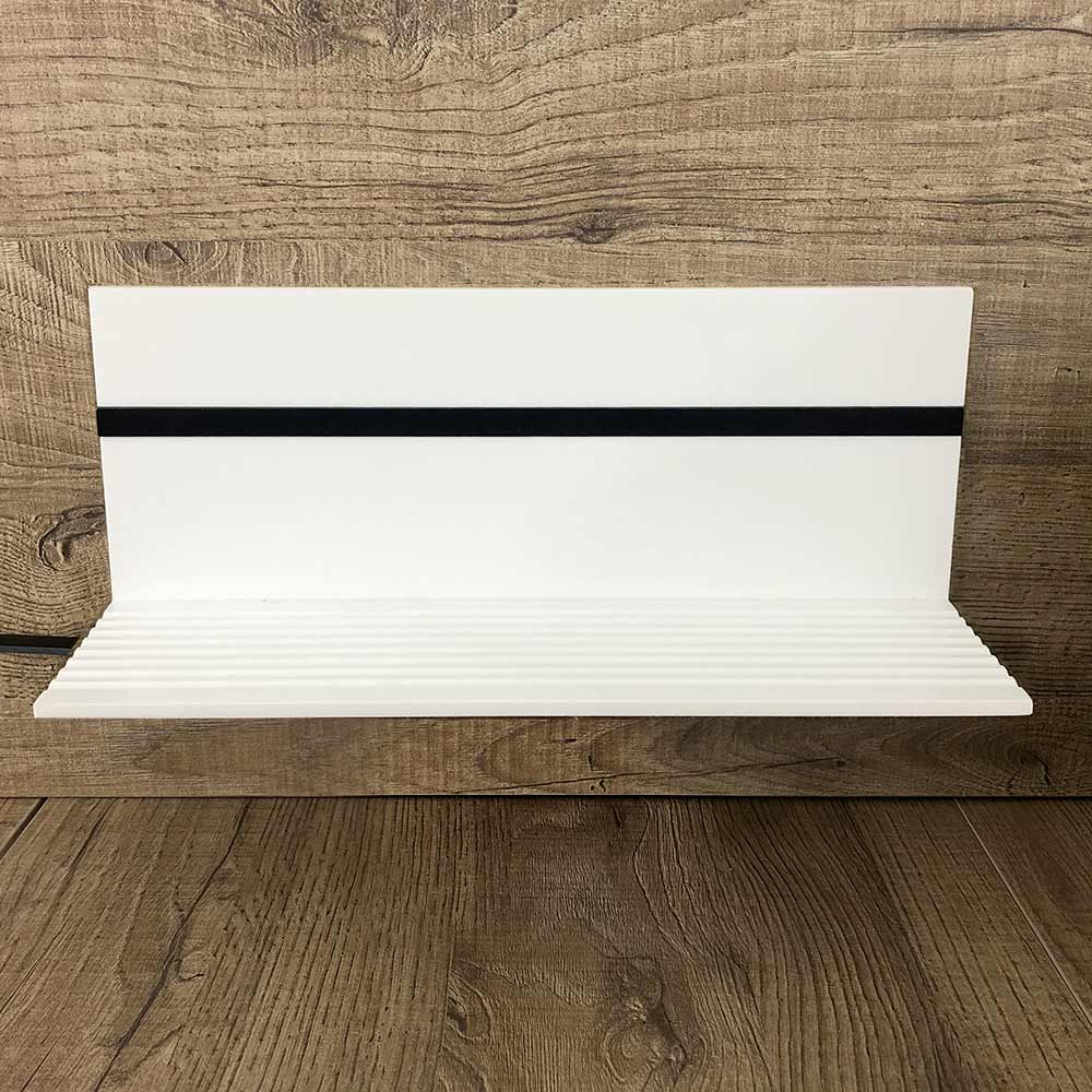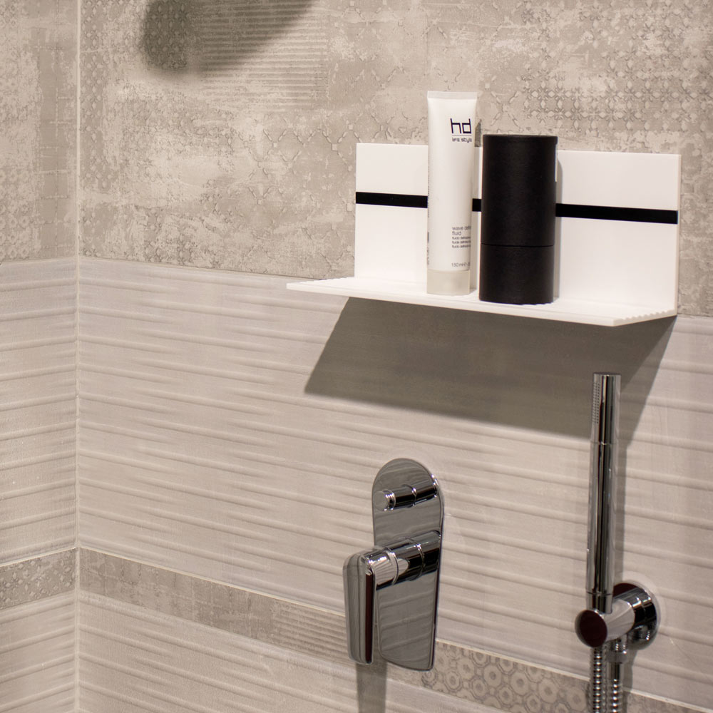 Badezimmer- oder Küchenregal aus weißem Corian oder mit schwarzem Einsatz, made in Italy.