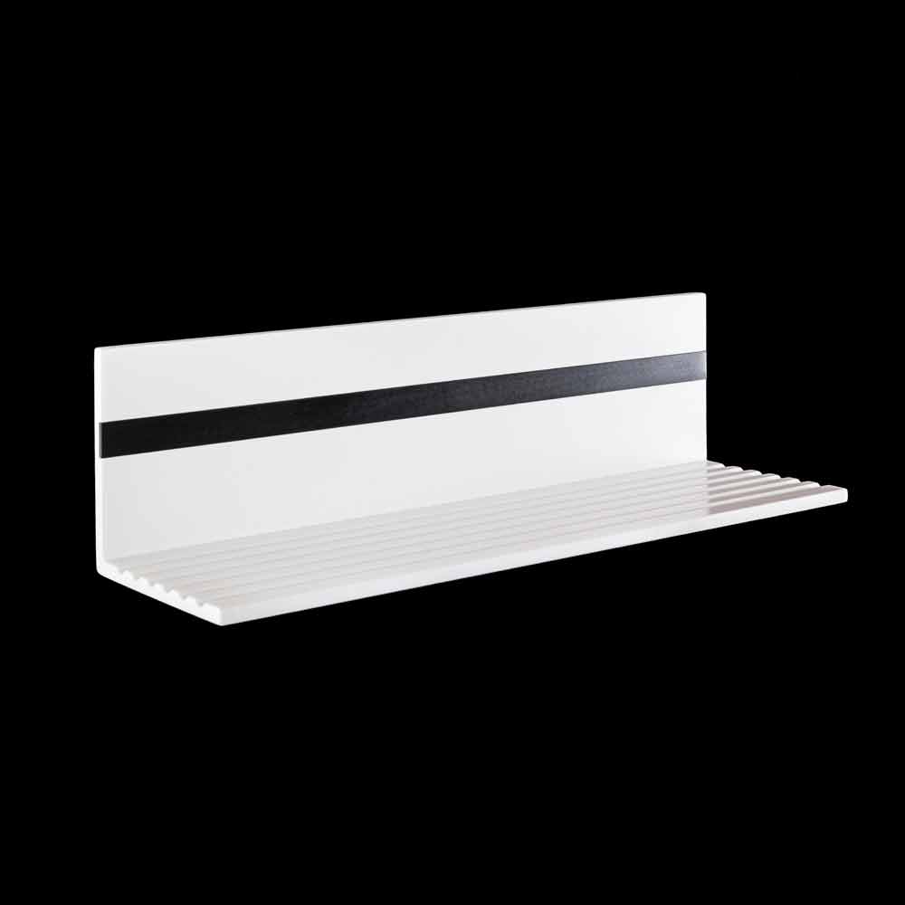 Wählen Sie das Wandregal für eine moderne und luxuriöse Atmosphäre ganz aus weißen oder weißen Corian mit schwarzem Einsatz, ein hygienischen Material mit wesentlichen Linien.