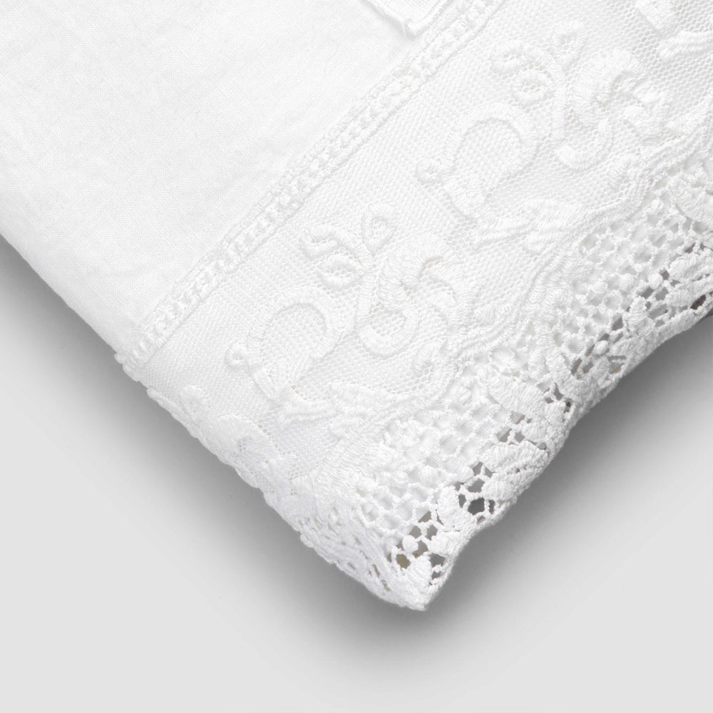 Bettlaken aus reinweißem Leinen mit verschiedenen Spitzen, luxuriöses Design, hergestellt in Italien.