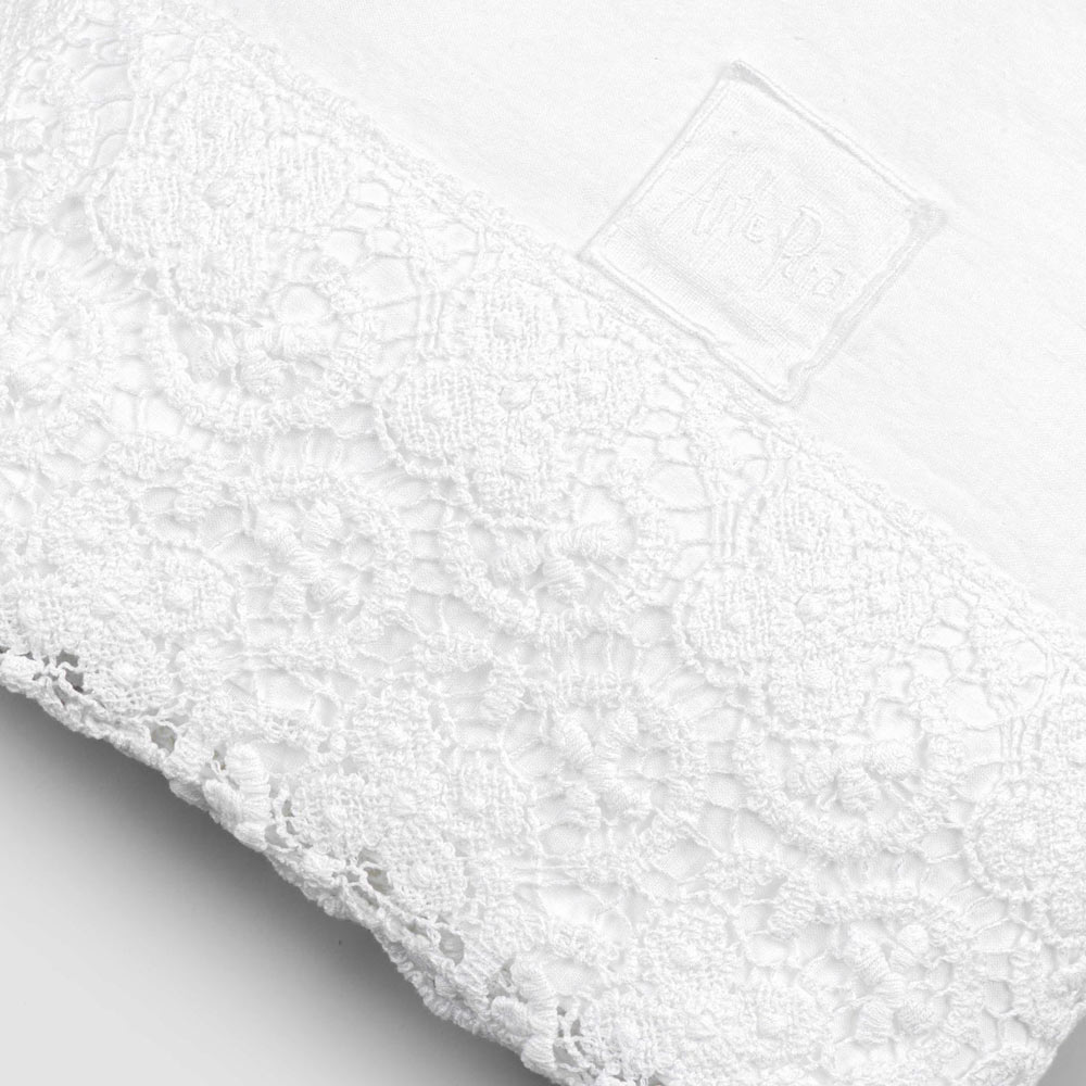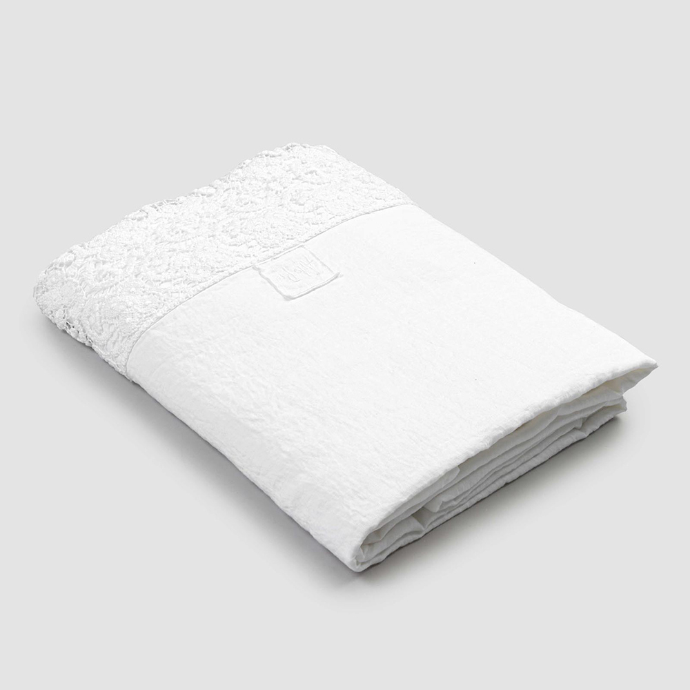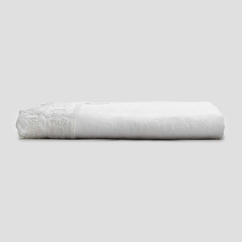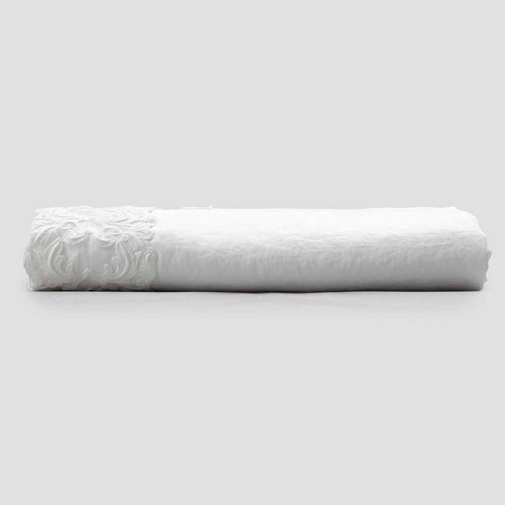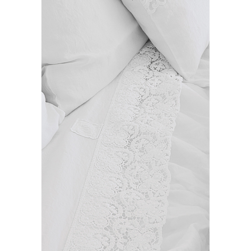 Weißes Leinenflachbetttuch mit Spitze für Doppelbett von hoher Qualität - Fiumana