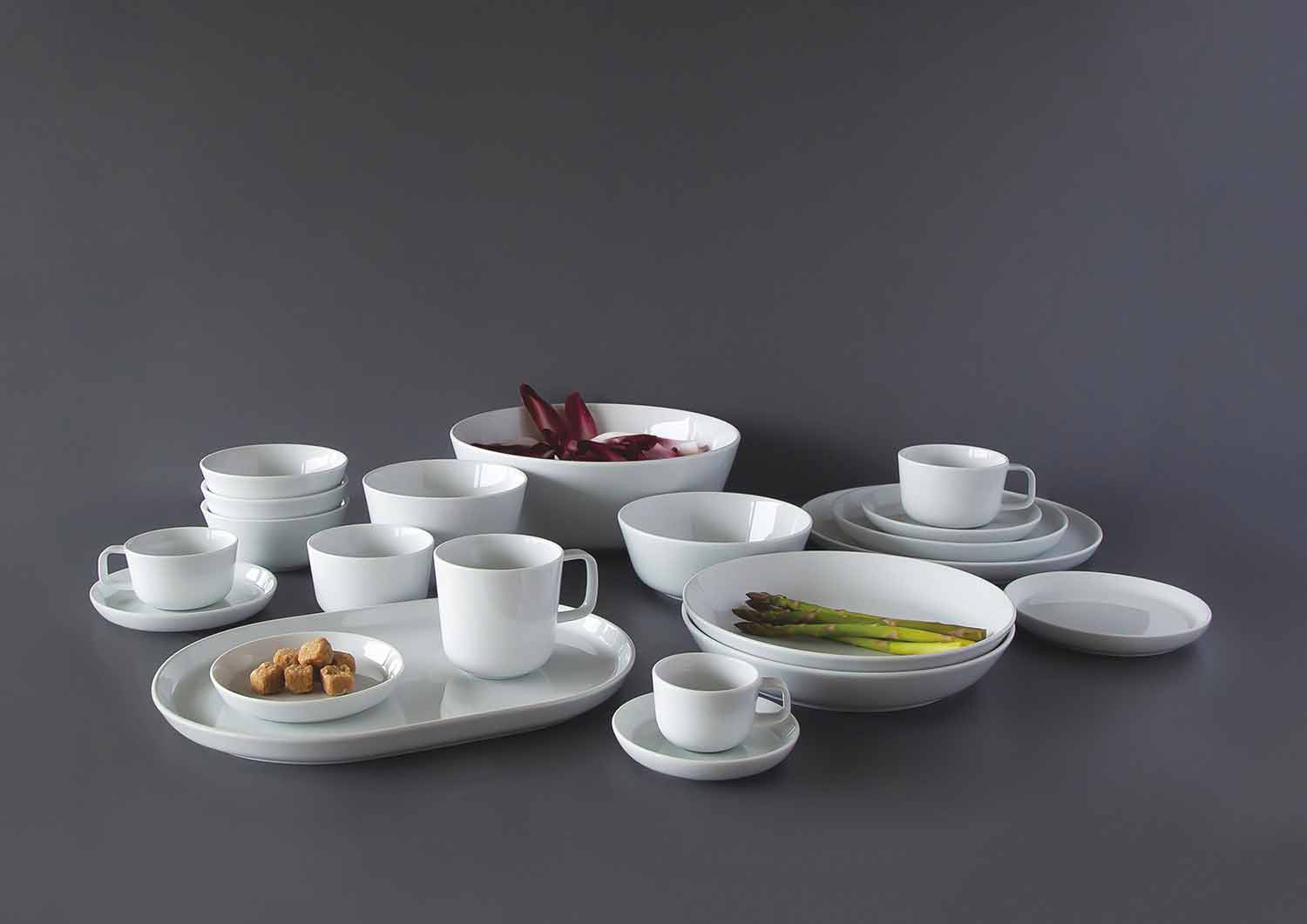 Dank seiner Fähigkeit, zeitlos zu sein und sich an jede Art von Service anzupassen, vom einfachsten bis zum raffiniertesten, erfüllt Porzellan die Anforderungen an Eleganz, Raffinesse und Nüchternheit, die für den Tisch gewünscht werden.