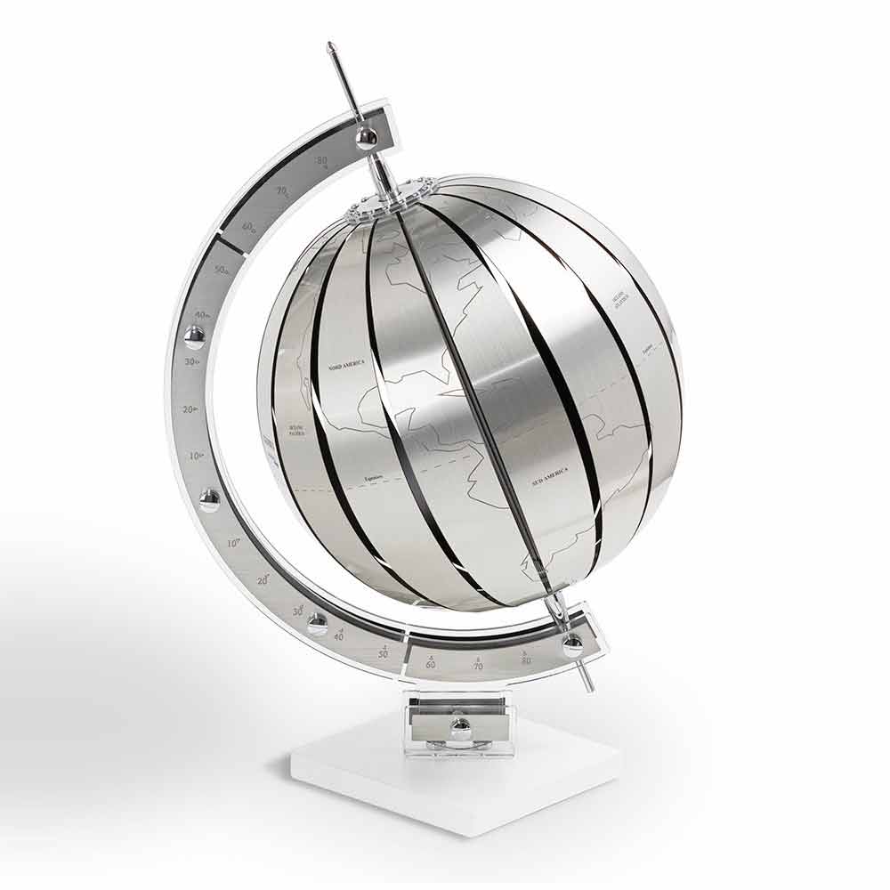 Der Träger besteht aus transparentem Methacrylat mit hoher Dichte und Reinheit, die Kleinteile sind aus verchromtem Messing, die Basis und aus lackiertem MDF. Schneiden und Gravieren werden mit High-Tech-Computer-Tools durchgeführt. Die Grafik zum Mapping ist eine Zusammenfassung unseres Globus und kann daher nicht als Lehrmittel verwendet werden.