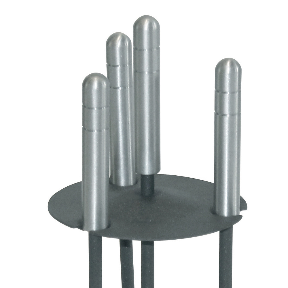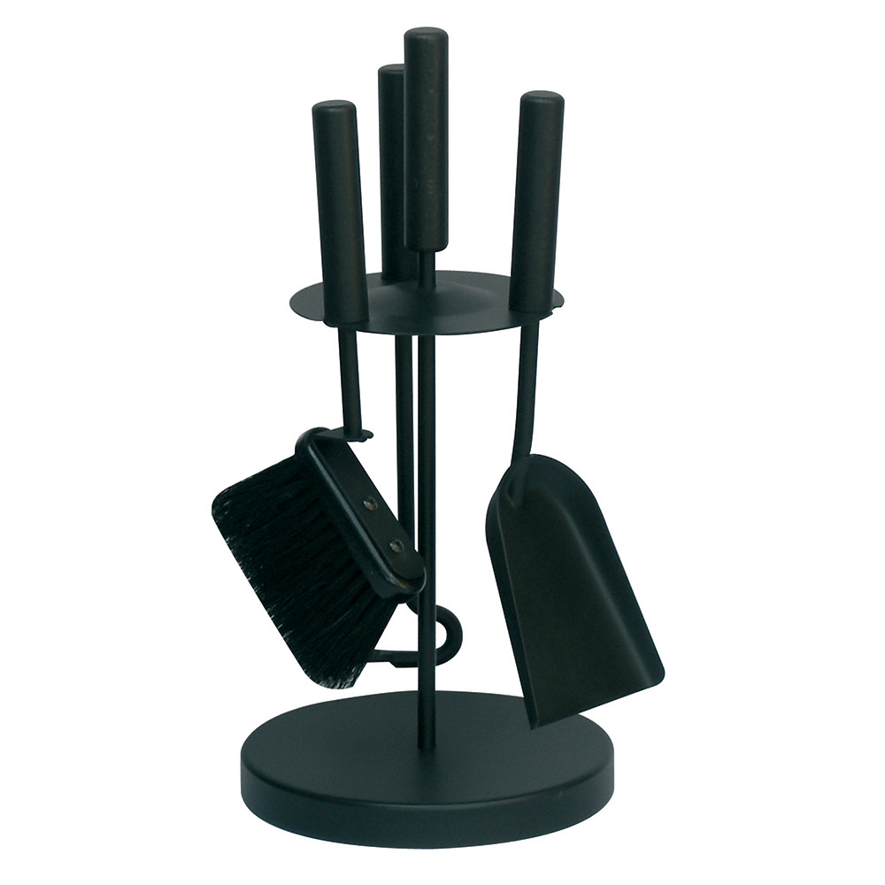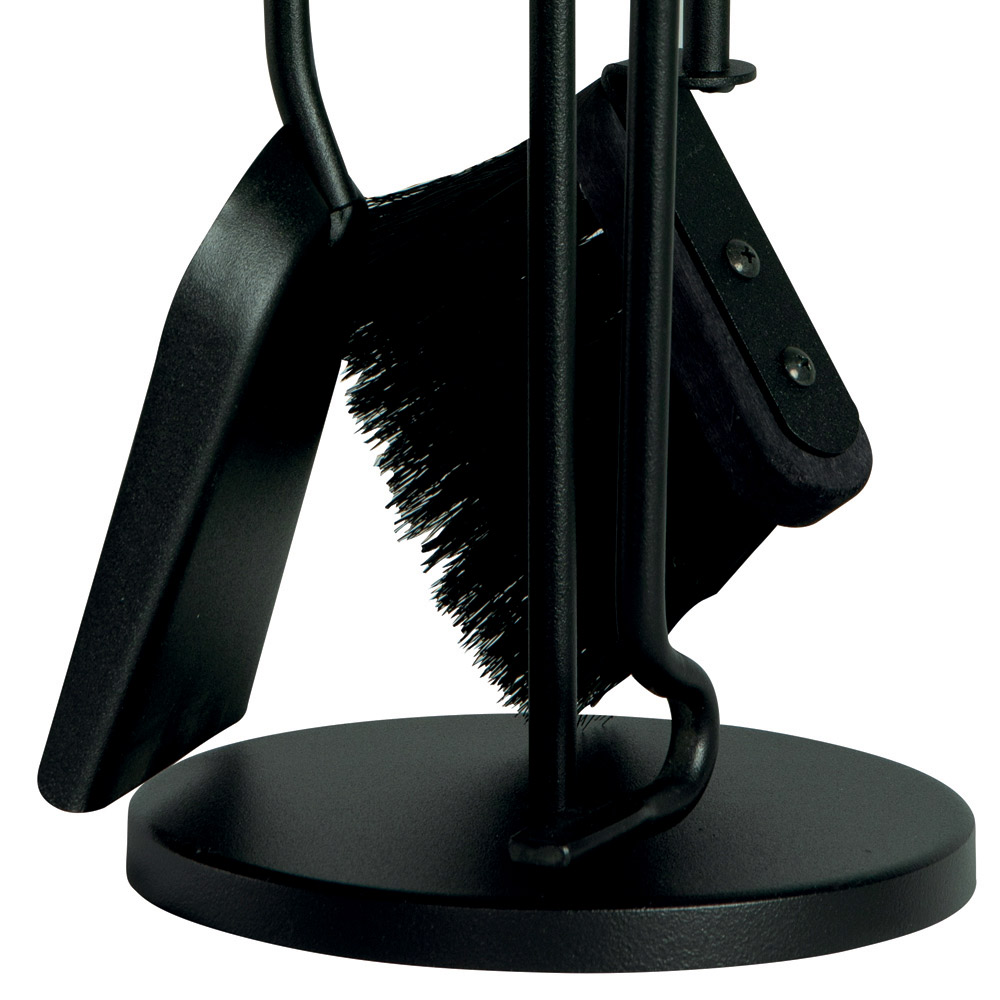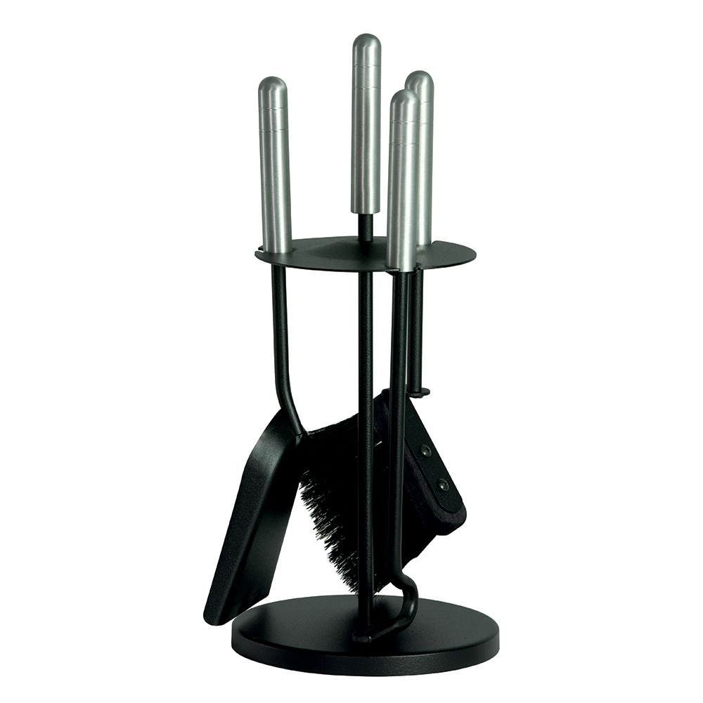 Der schlanke und dennoch robuste Rahmen bietet Platz für drei Zubehörteile, alle mit stabilen Griffen, die eine einfache Handhabung und Haltbarkeit gewährleisten . Durch das kompakte Design können Sie das Set platzsparend neben dem Kamin platzieren, während der runde Standfuß für Stabilität und Ordnung sorgt.