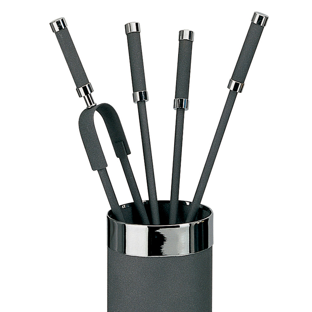 Dieser Kaminbesteckhalter ist mit seiner zylindrischen Silhouette und den verfügbaren Ausführungen die Quintessenz funktionaler Eleganz . Der Korpus des Behälters bildet einen raffinierten Kontrast zur Oberkante und macht ihn zu einem Designerstück, das in jedem Wohnraum die Blicke auf sich zieht. Im Inneren sind die für die Kaminpflege notwendigen Werkzeuge im Einklang mit dem Behälter gefertigt und auf Funktionalität und Widerstandsfähigkeit ausgelegt.