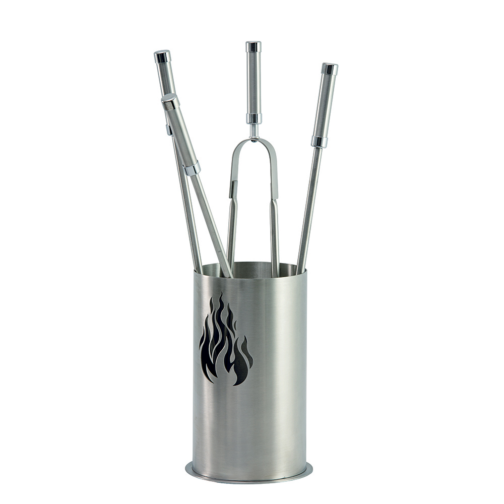 Dieser Kaminbesteckhalter aus hochwertigem Edelstahl ist ein Muss für jeden, der Funktionalität und Eleganz vereinen möchte. Sein zeitgenössisches Design, das sich durch klare Linien und eine auffällige flammenförmige Schnitzerei auszeichnet, macht ihn zu einem wahren Kunstobjekt, perfekt, um dem traditionellen Feuerritual einen Hauch von Modernität zu verleihen.