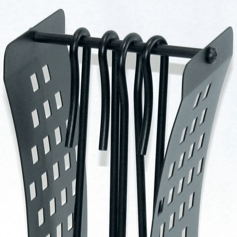 Mit einer robusten Konstruktion und einer schwarzen Oberfläche gewährleistet es eine lange Lebensdauer und einfache Wartung . Die stabilen Griffe bieten sicheren Halt und ermöglichen eine effektive und mühelose Bewältigung des Feuers. Die Basis ist so konzipiert, dass die Werkzeuge aufrecht bleiben, der Platz optimiert wird und zu einer aufgeräumten Umgebung beiträgt.